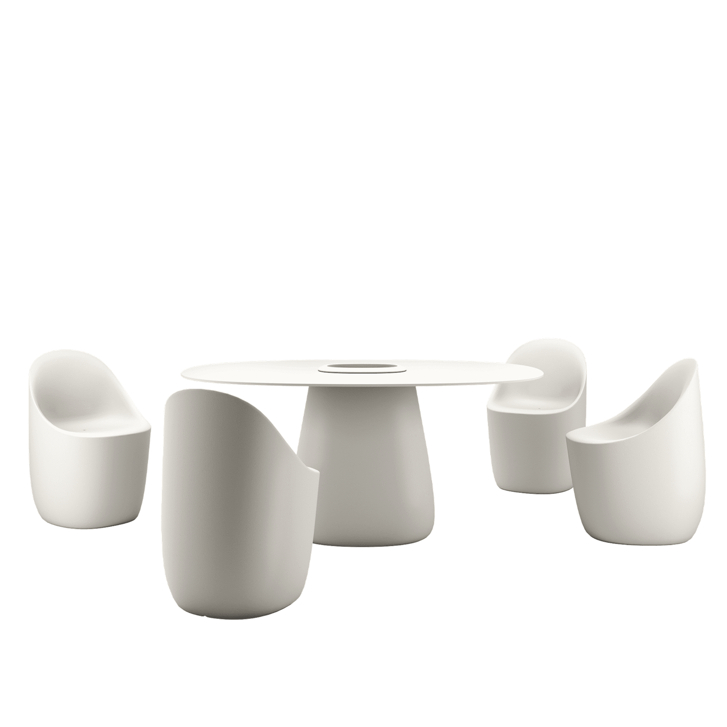 Cobble Chair White Warm fra Qeeboo. Cobble-setet er en komfortabel stol i samme farge som Cobble-bordbunnen, produsert i resirkulerbar polyetylen, designet av Elisa Giovannoni.