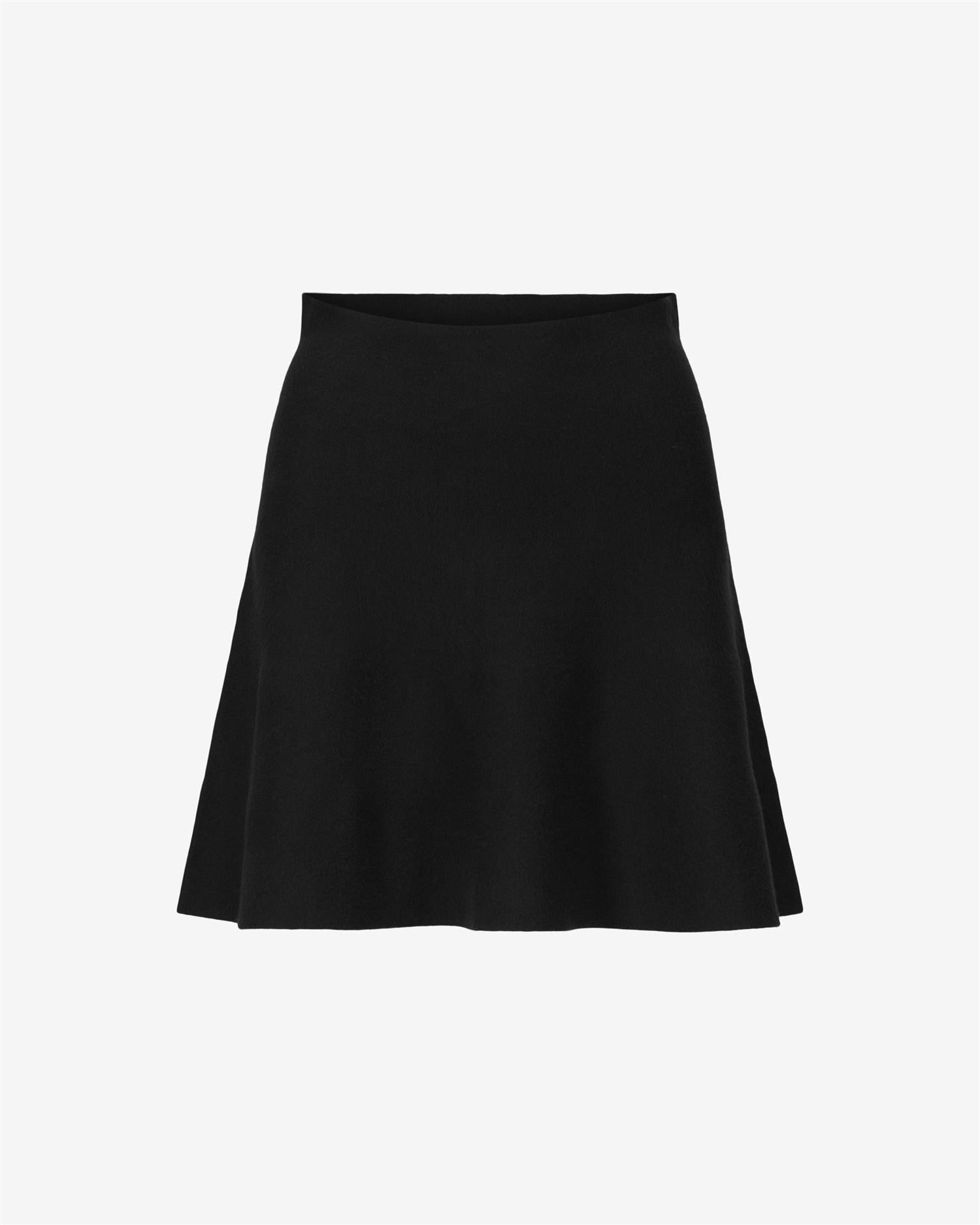 Serge Skirt Black fra Iben. Et klassisk sort miniskjørt i den behagelige Serge kvaliteten. Skjørtet er smalt i livet og går ut i en a-fasong. Lengden kan variere, da du kan velge hvor høyt du ønsker å ha det i livet. Style det sammen med matchende Serge Cardigan.