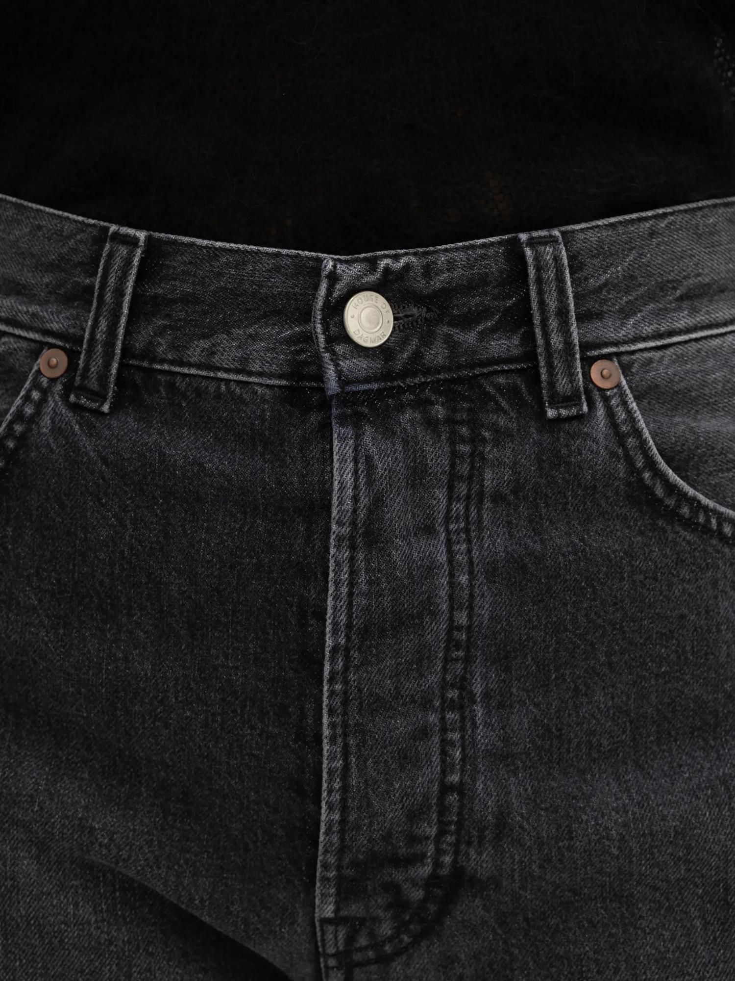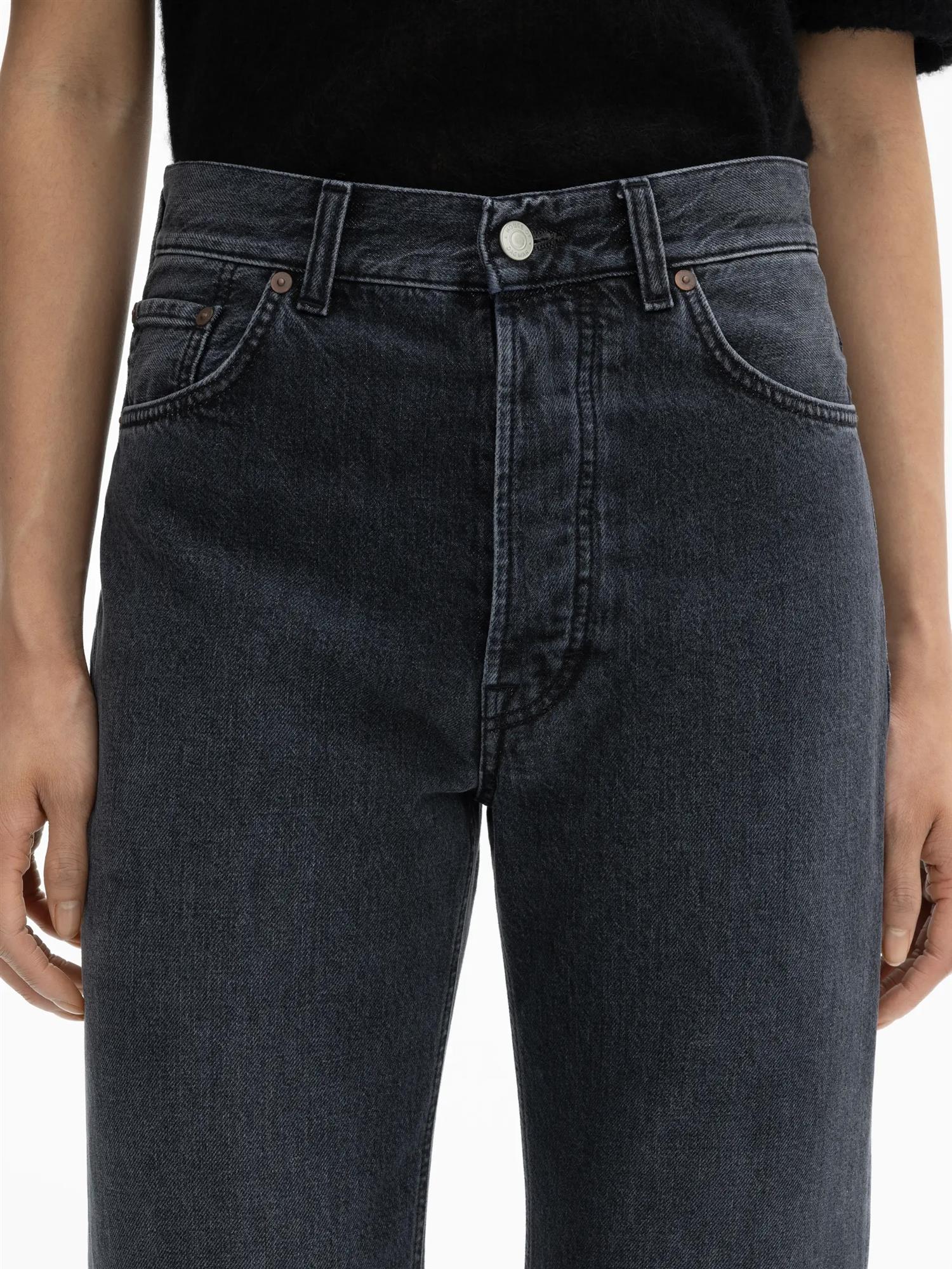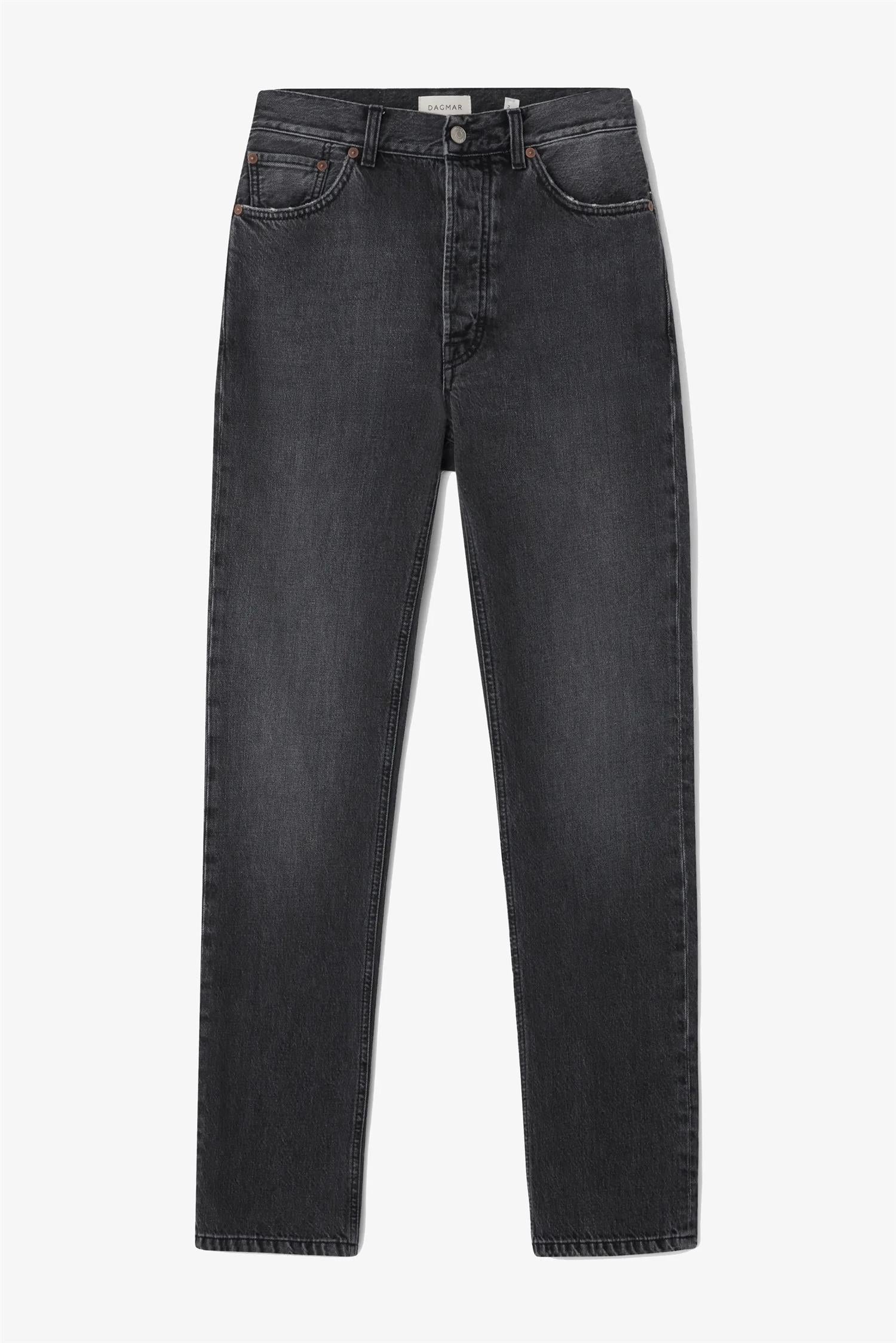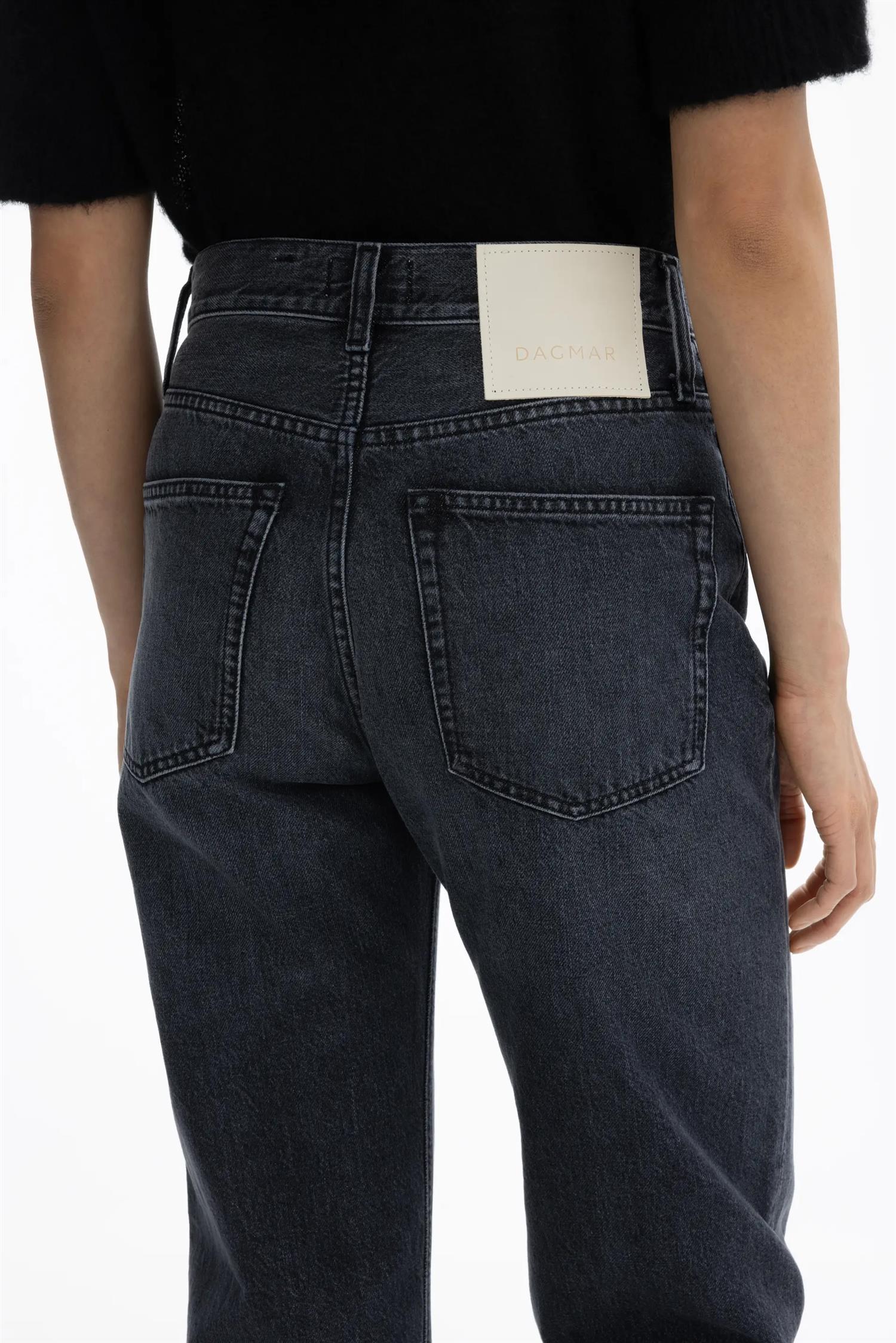 Straight Leg Denim Dark Grey fra Dagmar. En klassisk jeans. Den har høyt liv og rette ben. Buksen har 5-lommer og lommer foran. Buksen er i en mørk grå vask. En perfekt jeans til hverdagen.