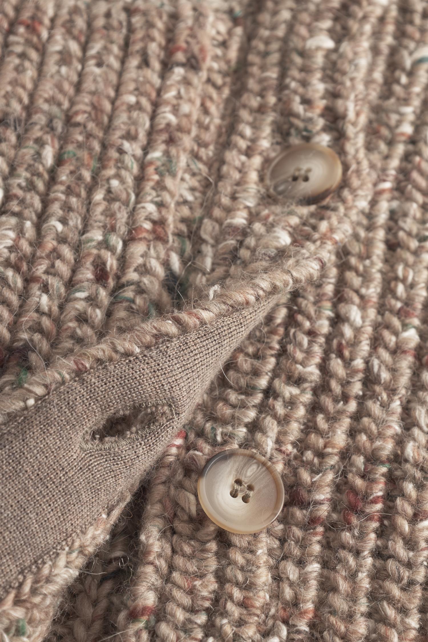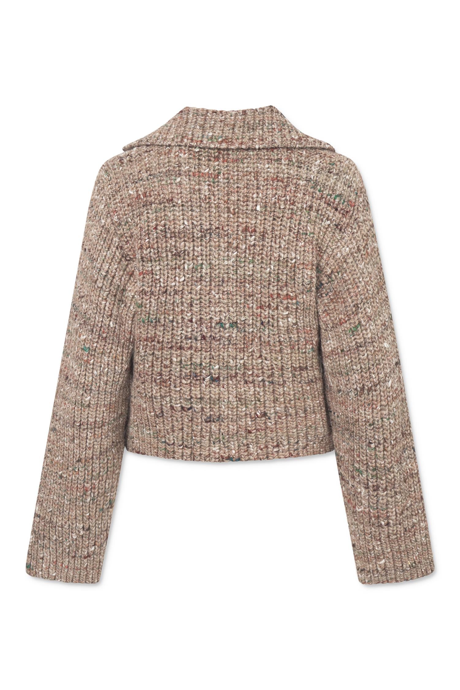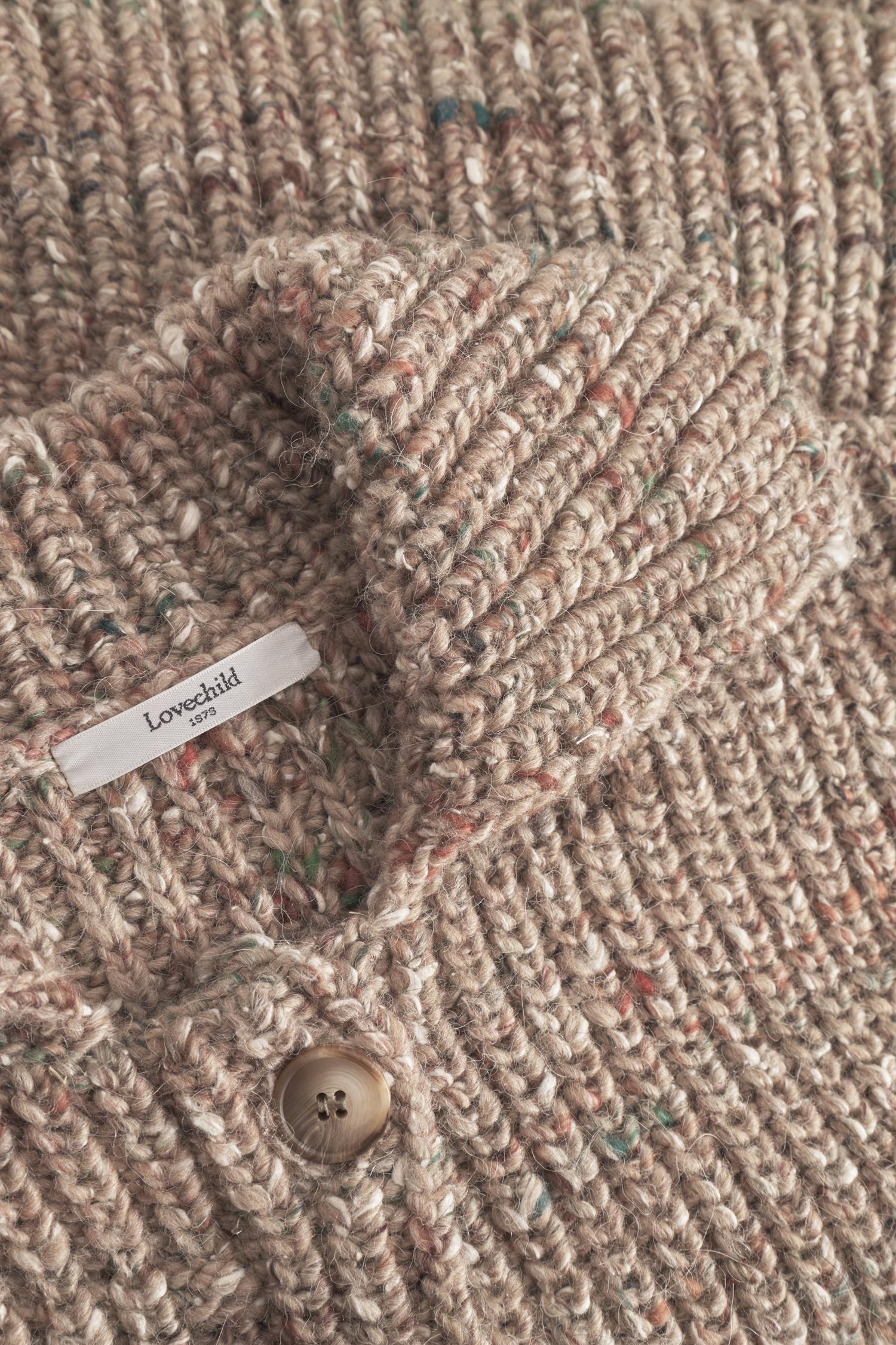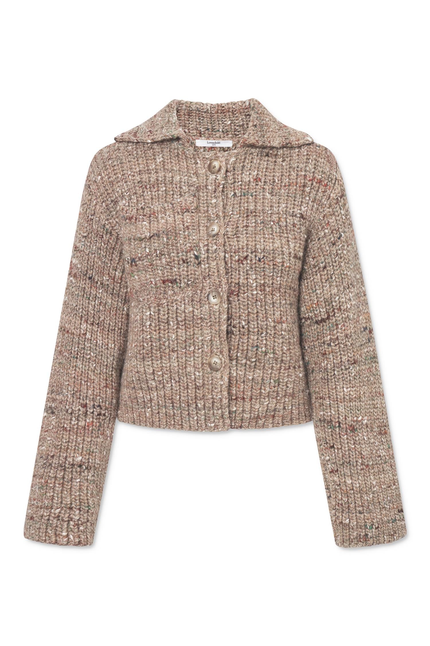 Lola Cardigan Beige Paella fra Lovechild. En strikket cardigan med beige bunn og melert i flere farger. Den er tykk og har en kort og rett passform. Cadiganen kan lukkes med knapper foran, har to lommer på brystet og stor krage. Denne blir en favoritt i høst og vintergarderoben.