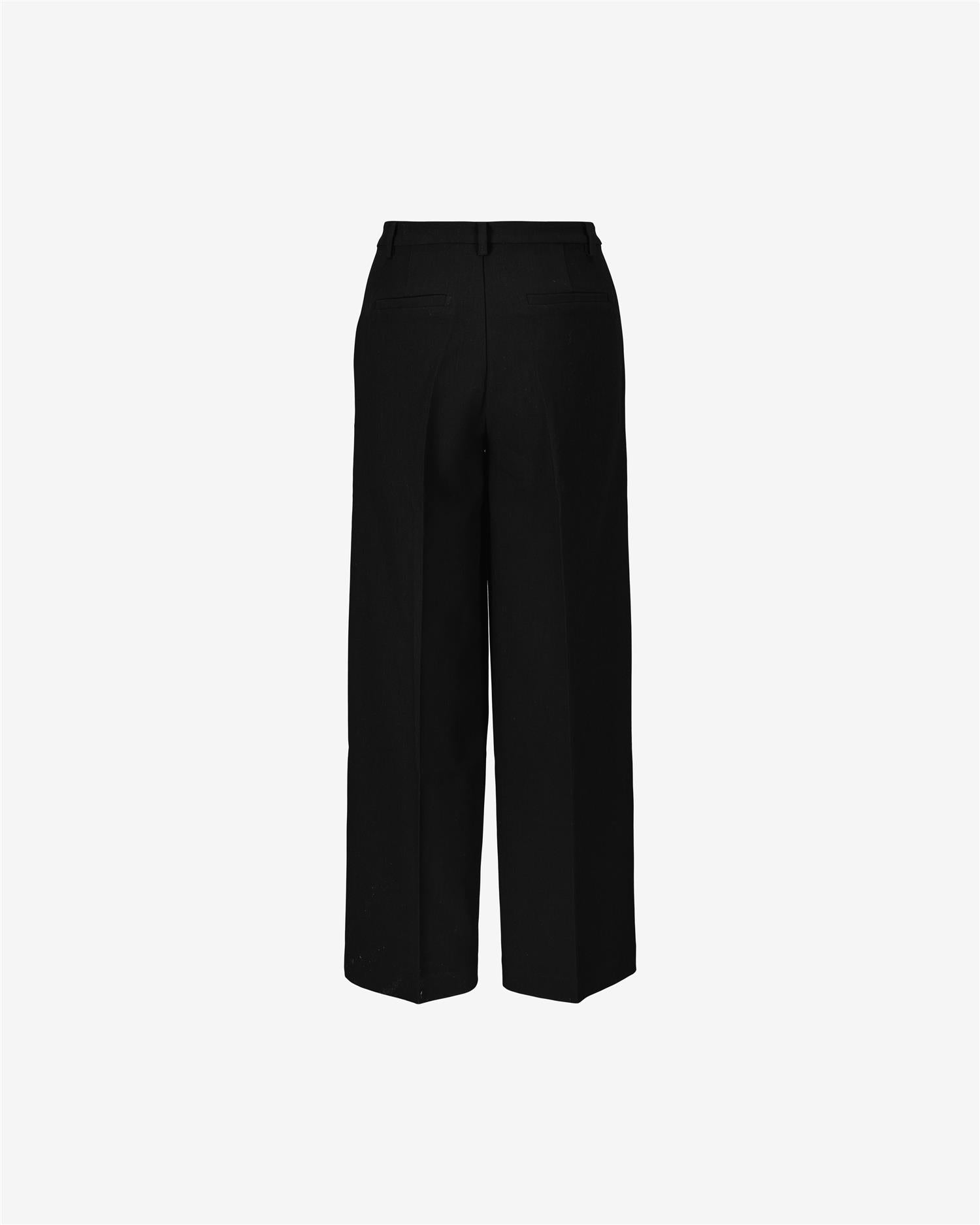 Reign Tailored Extra Wide Black fra Iben. Reign vil snart bli en favoritt i alles garderobe. Basert på deres bestselgende jeans, Reign-jeans, er disse buksene den perfekte dressbuksen med midje og rette brede ben. De rette brede bena er komplett med pressede bretter, skrå lommer og ren skjult flueåpning. Disse buksene er laget av en premium viskoseblanding. Style den med en t-skjorte, topp, body. En allsidig bukse som går sømløst fra dag til natt.