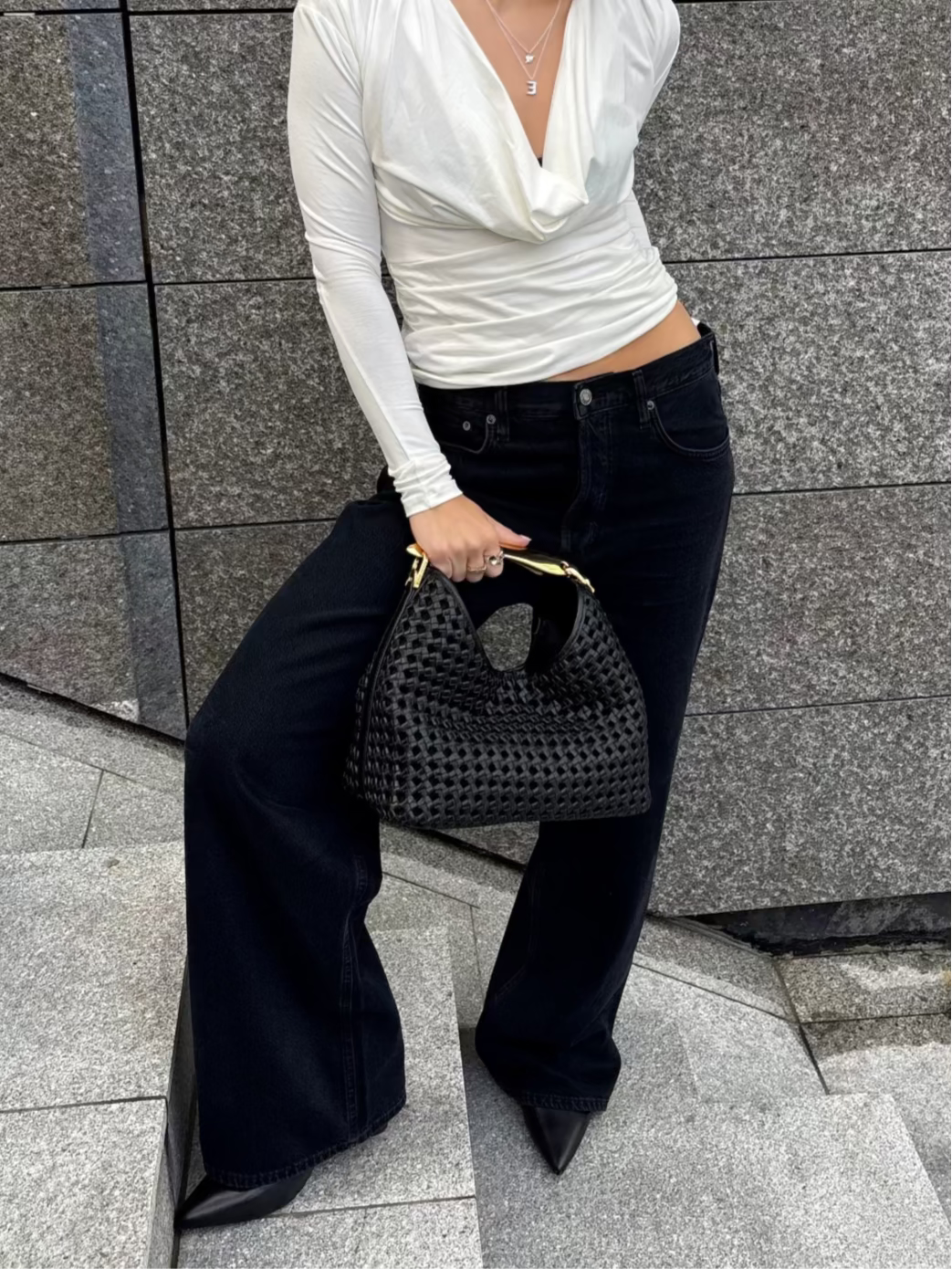 Fremhevet av et overdådig topphåndtak i metall, har Boomerang Large den karakteristiske Elleme-formen, som symboliserer uanstrengt chic