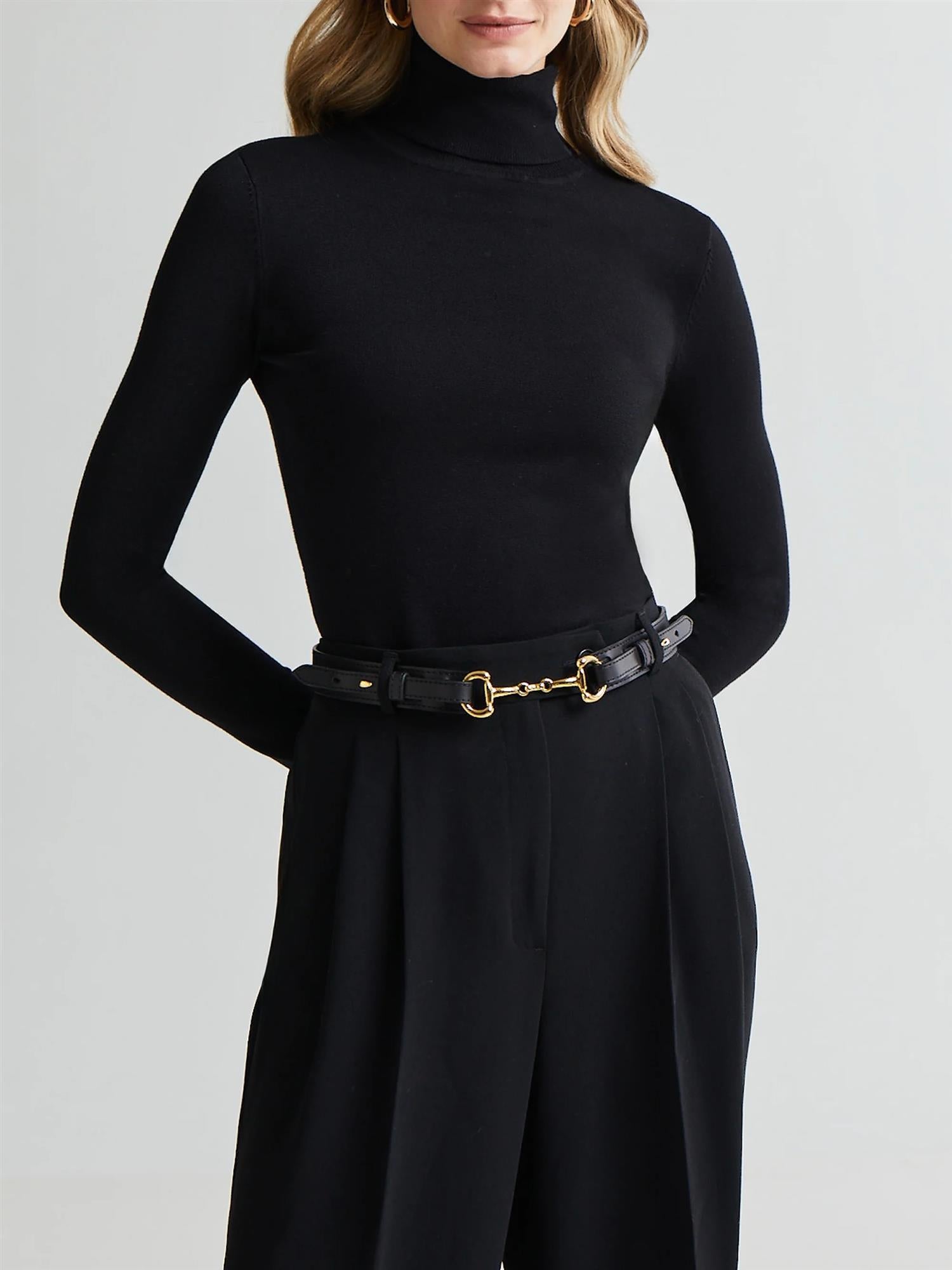 Gadia Belt Black fra Andiata- Et skinnbelte med stilig metallspenne i gull. Det er tykkere rundt livet og har en gullspenne foran med et smalere belte under. Det er håndlaget i Italia av skinn. Dette er beltet som setter prikken over ien på antrekket.