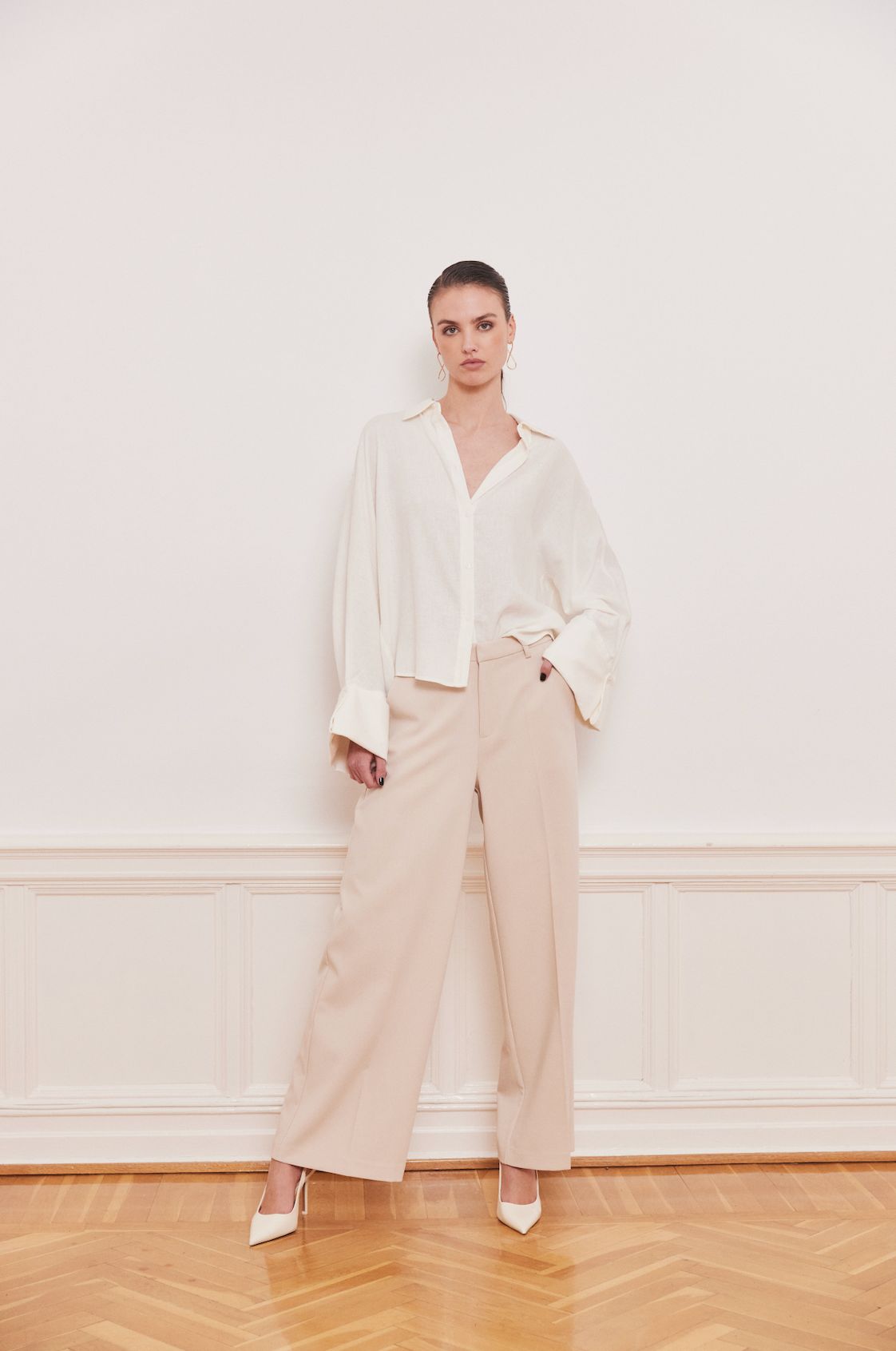 Atari Shirt White fra Iben er endelig tilgjengelig i en lett lin- og viskoseblanding! Den klassiske skjorten med det lille ekstra. Skjorten har en løs, boxy fit med vide ermer og stor erme nederst. Noe som gir den statement. Den har klassiske skjorte detaljer som knepping foran og krage. Den perfekte skjorten til jobb, hverdag og ferieturen - som holder deg kjølig gjennom den varme sommeren.