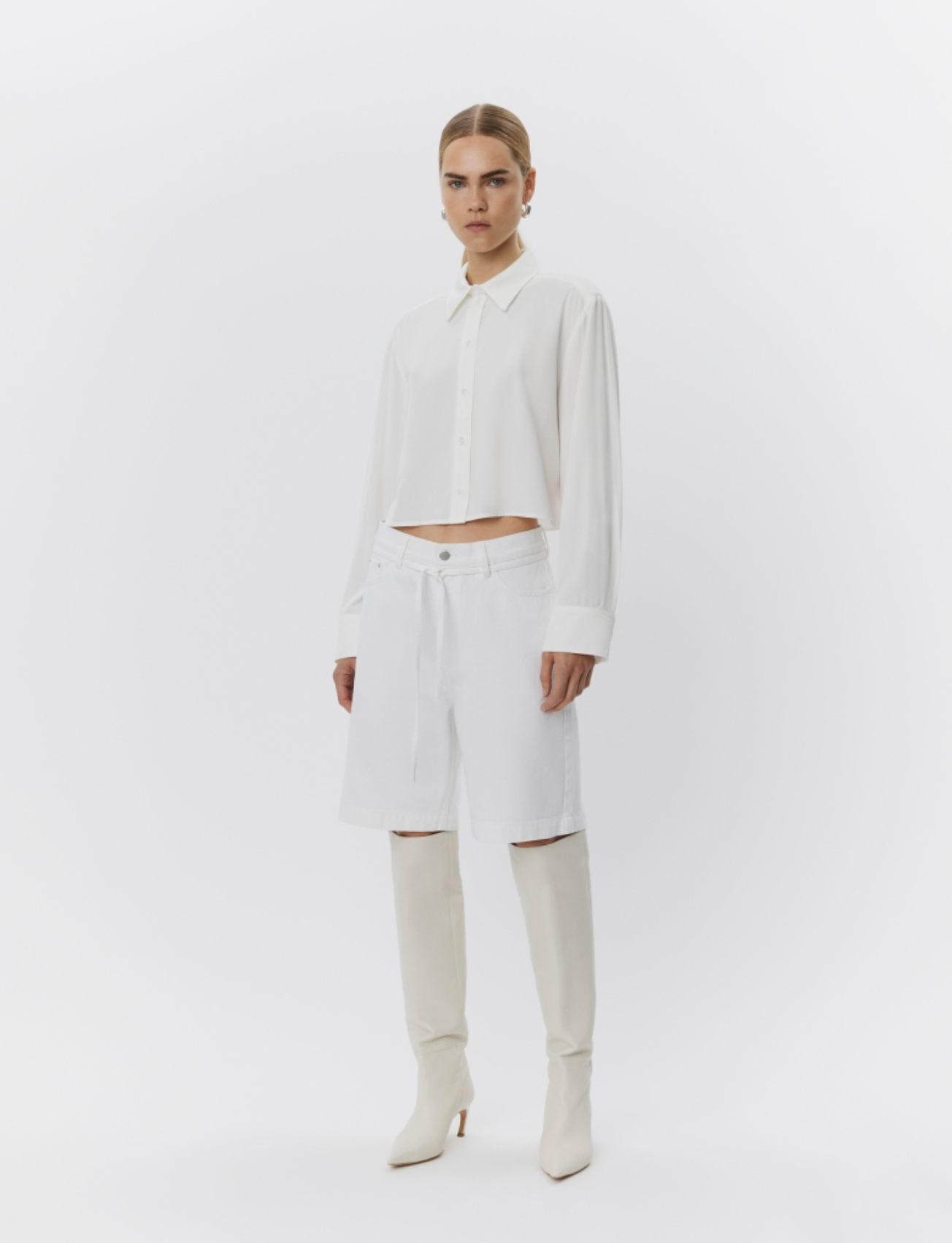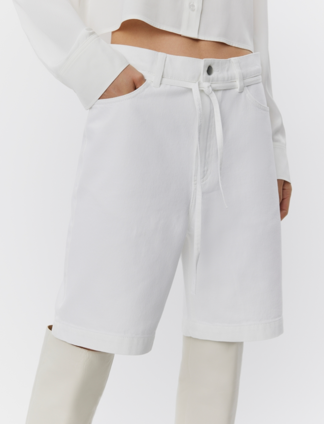 Bestselgeren Elijah jeans fra DAY har endelig ankommet som shorts! Elijah er en deilig og avslappet jeansmodell med knyting i livet, denne gangen i knelengde! Shortsen passer godt inn i trendbildet for sommeren 2025 med sin lange lengde, og løse, avslappede passform. Gå gjerne ned i størrelse for en skreddersydd look, eller omfavn den baggy silhuetten ved å velge din vanlige størrelse.