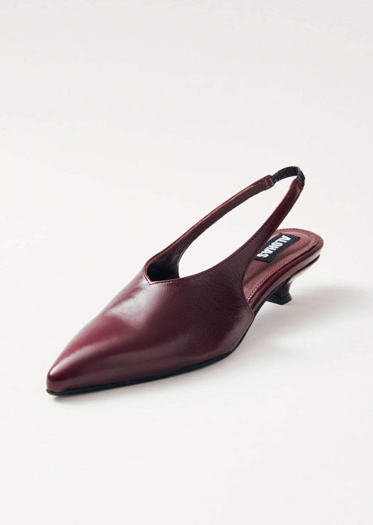 Eros leather muled fra Alohas er et par stilrene og elegante kitten heels laget av glatt og mykt skinn. Skoen har en lav hel, feminin slingback rundt ankelen, og en spiss tå. Eros er nydelige i kombinasjon med vide bukser, eller et skjørt med løs fasong. Skoene kan pyntes ned til hverdags, men er også ypperlige til formelle anledninger - Virkelig den perfekte day to night skoen