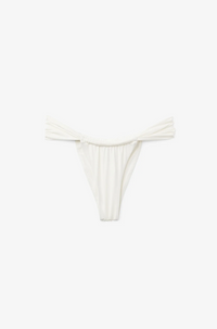 Reef bottom i Pearl White er en allsidig bikinitruse, designet til å sitte høyt på hoften. Trusen har draperinger både foran og bak, som gir en luksuriøs og delikat look. Denne alsidige bikinitrusen kan tilpasses varierende dekke over baksiden, alt etter hvor høyt du ønsker å plassere trusen over hoftene. Reef er laget av et delikat og mykt italiensk premium tekstil, som gir en vakker shimmereffekt!