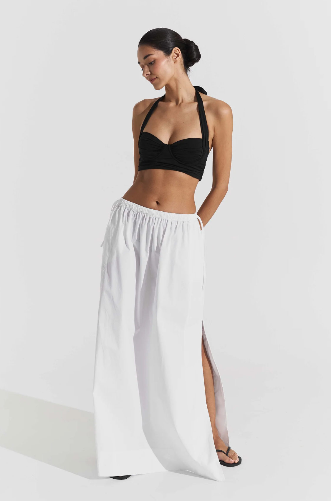 Haven midi top fra Seaquelle har et nydelig, drapert parti med undervaier, som gir deg den støtten bysten din trenger. Toppen har brede skulderstropper som kan knytes rundt nakken for en flatterende sweetheart utringning, eller på ryggen for en elegant bandeau-look. Haven er nydelig i kombinasjon med tilhørende bukse og skjørt, og kan enkelt transformeres over til en elegant kveldslook. Toppen er en kortere versjon av bestselgeren Haven top, som gir god støtte og dekke.