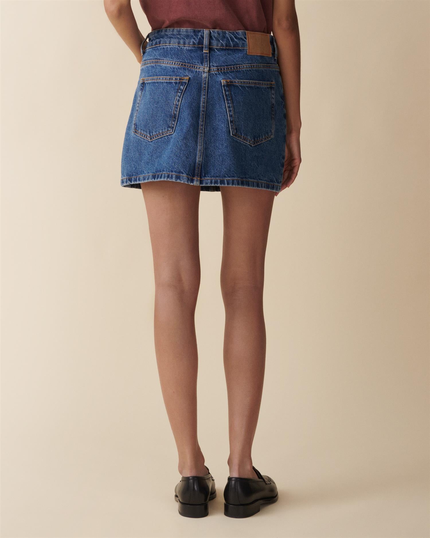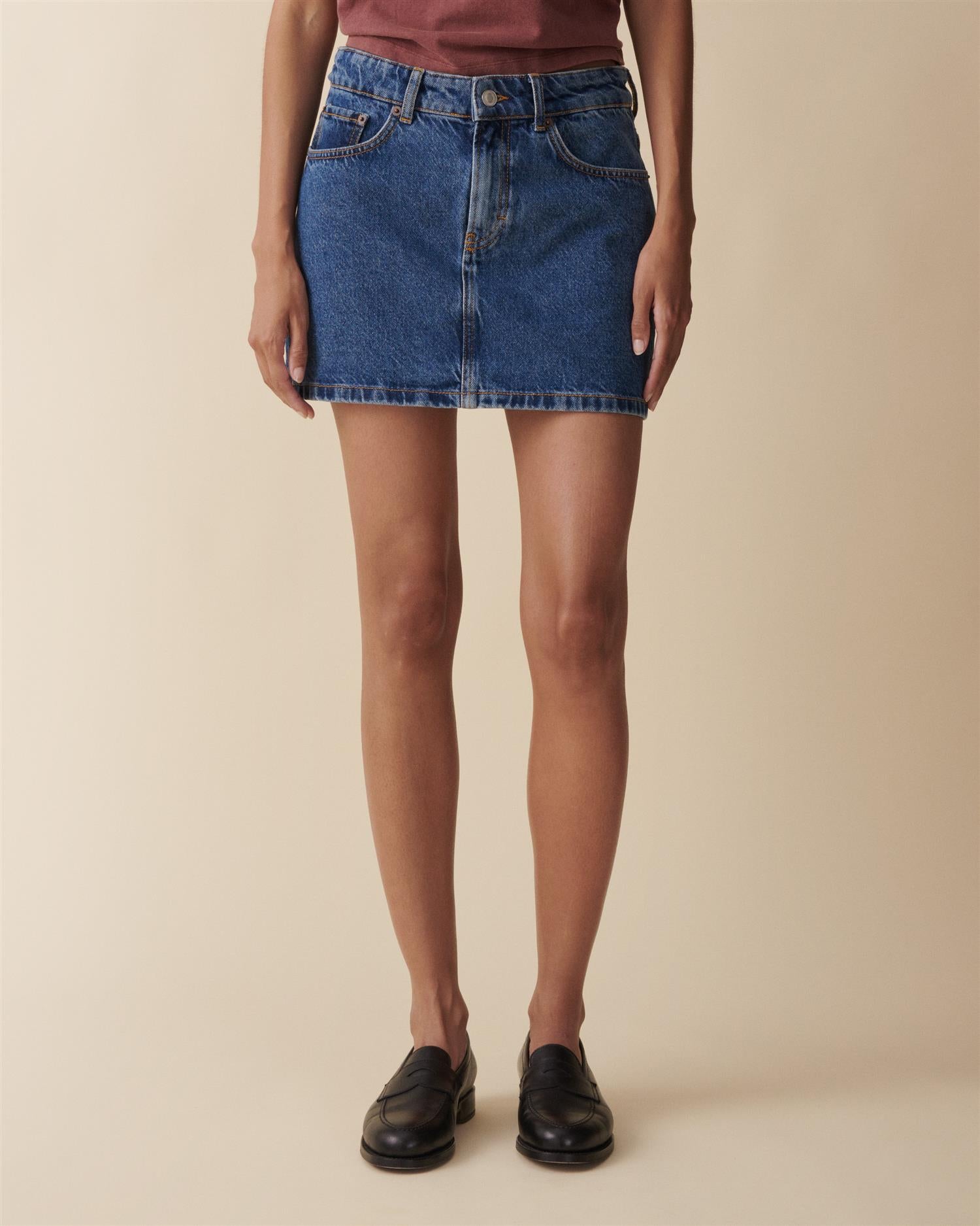 Vivi denimskjørtet fra Jeanerica er tilskuddet du trenger i din denim-garderobe denne sommeren! Et miniskjørt med en moderne vri, og en elegant mellomblå vask. Skjørtet er perfekt til en klassisk hvit t-skjorte og høye boots for en stilren look, eller til en lekker sommerbluse for en touch av sofistikasjon.