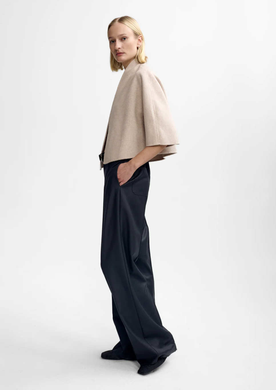 Kira Wool Jacket i Latte fra Christian Aks. Kira er laget av myk ull, perfekt for å trekke over antrekket for ekstra komfort. Med korte ermer og en cropped fit er jakken er enkel å bruke til ulike anledninger - enten det er inne på et kjølig kontor, eller over sommerkjolen på en kjølig kveld.