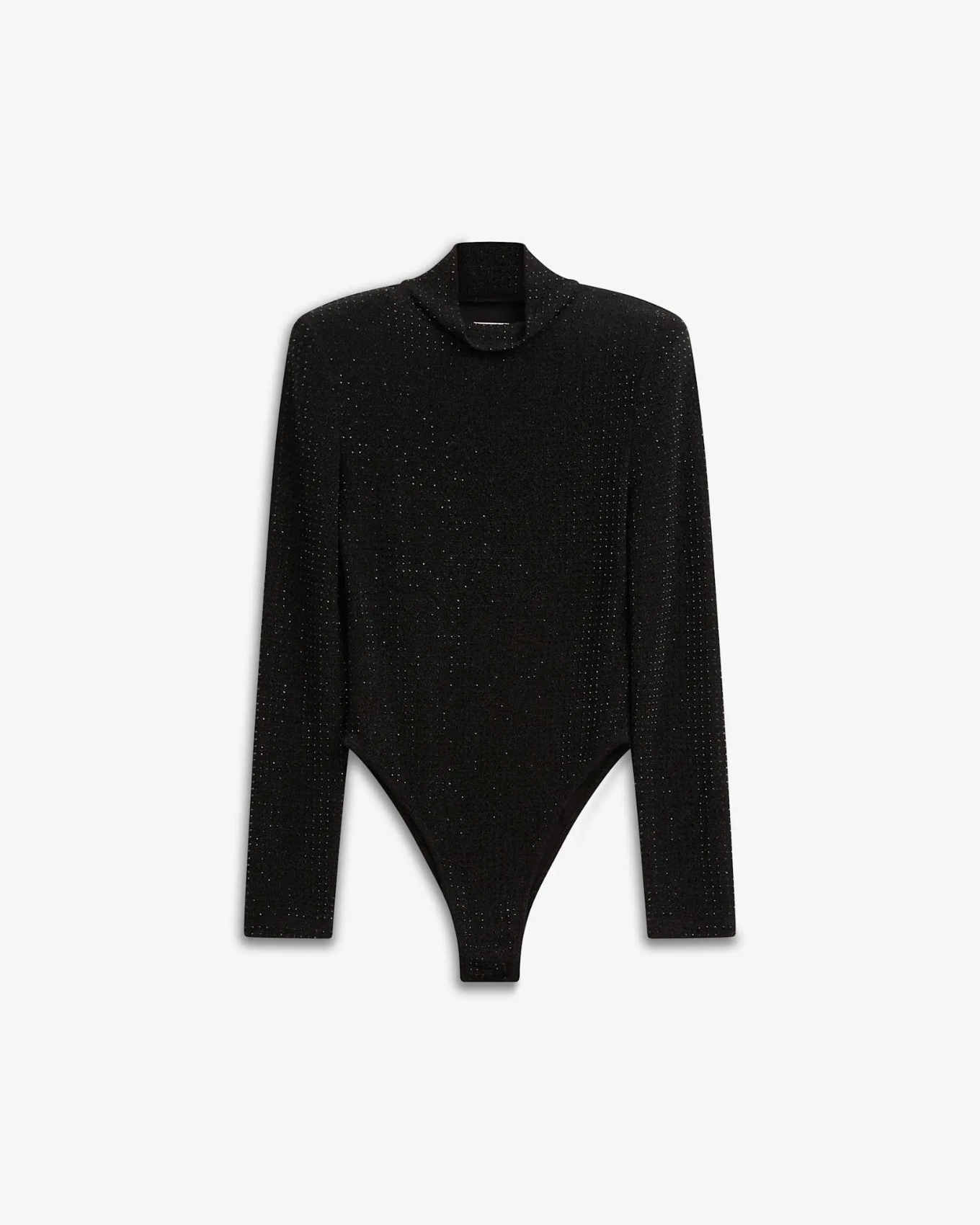 Luxe Sequin Body black fra IBEN er den ultimate bodyen for vinterens festligheter, med sin sorte base og glittrende steiner. Bodyen har en ettersittende passform med rund hals og lange ermer, fullført med Ibens signatur - skulderputer. De lett puffede skuldrene skaper en balanse mellom det maskuline og feminine, og gjør bodyen kul til en hverdagsjeans, eller til tilhørende Luxe skjørt.