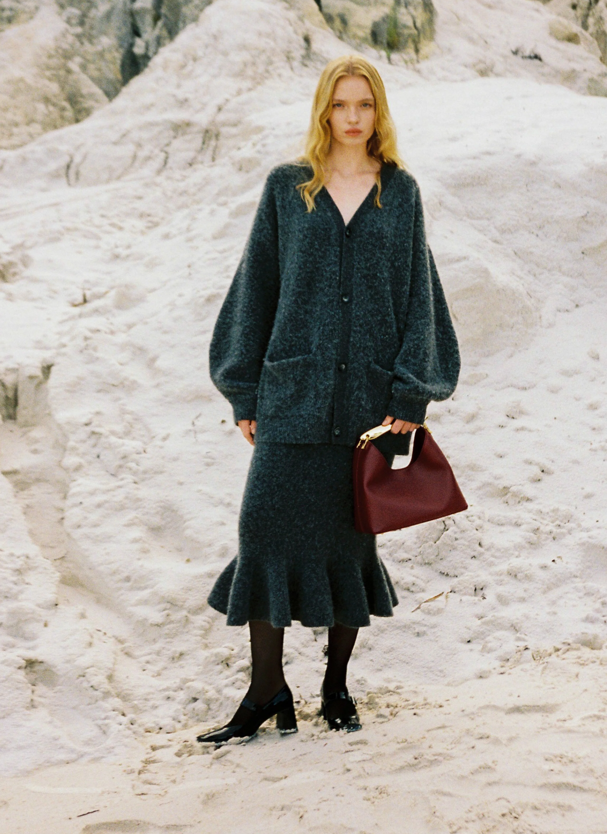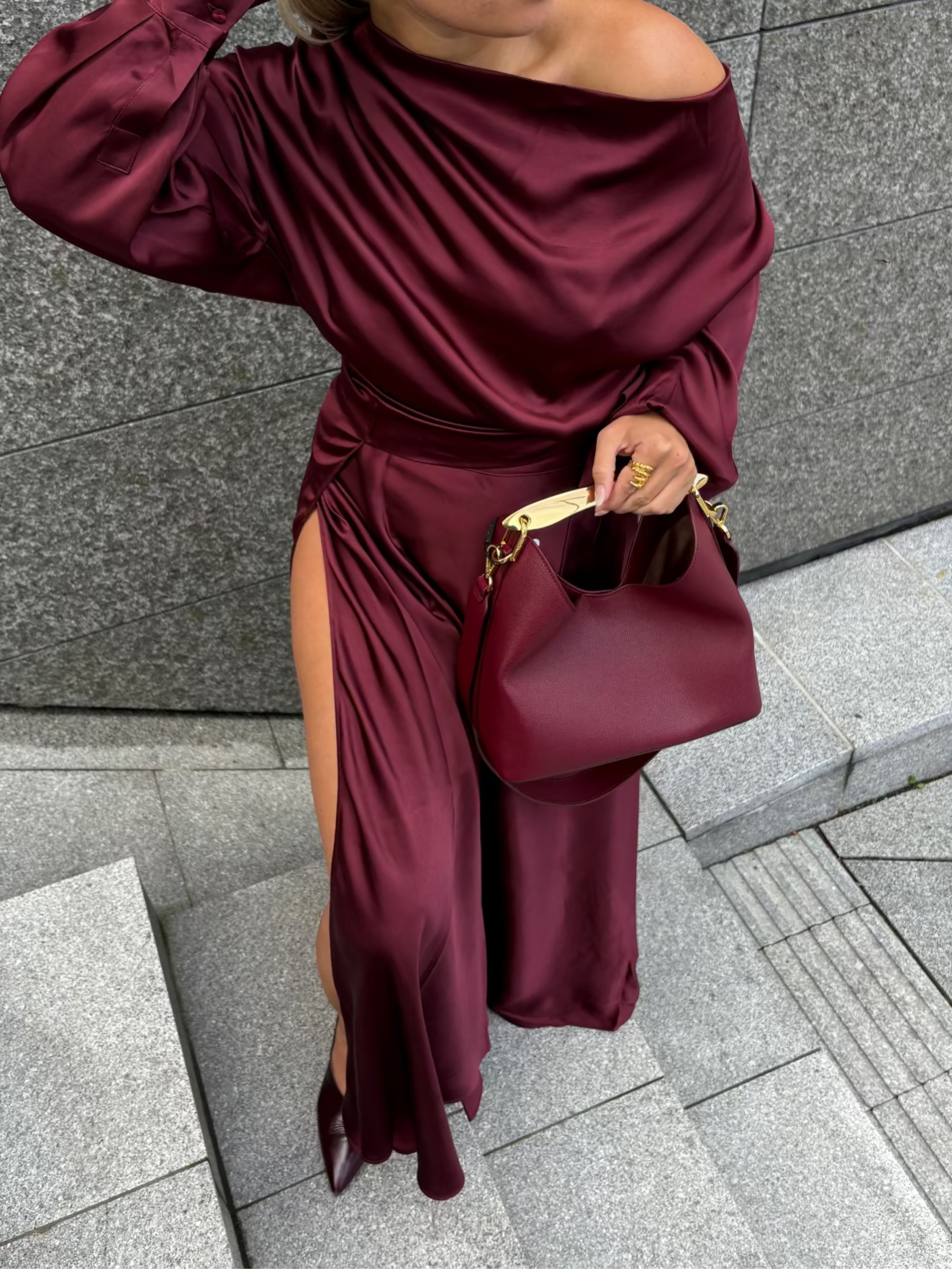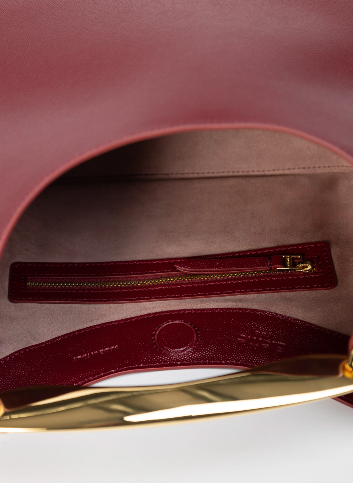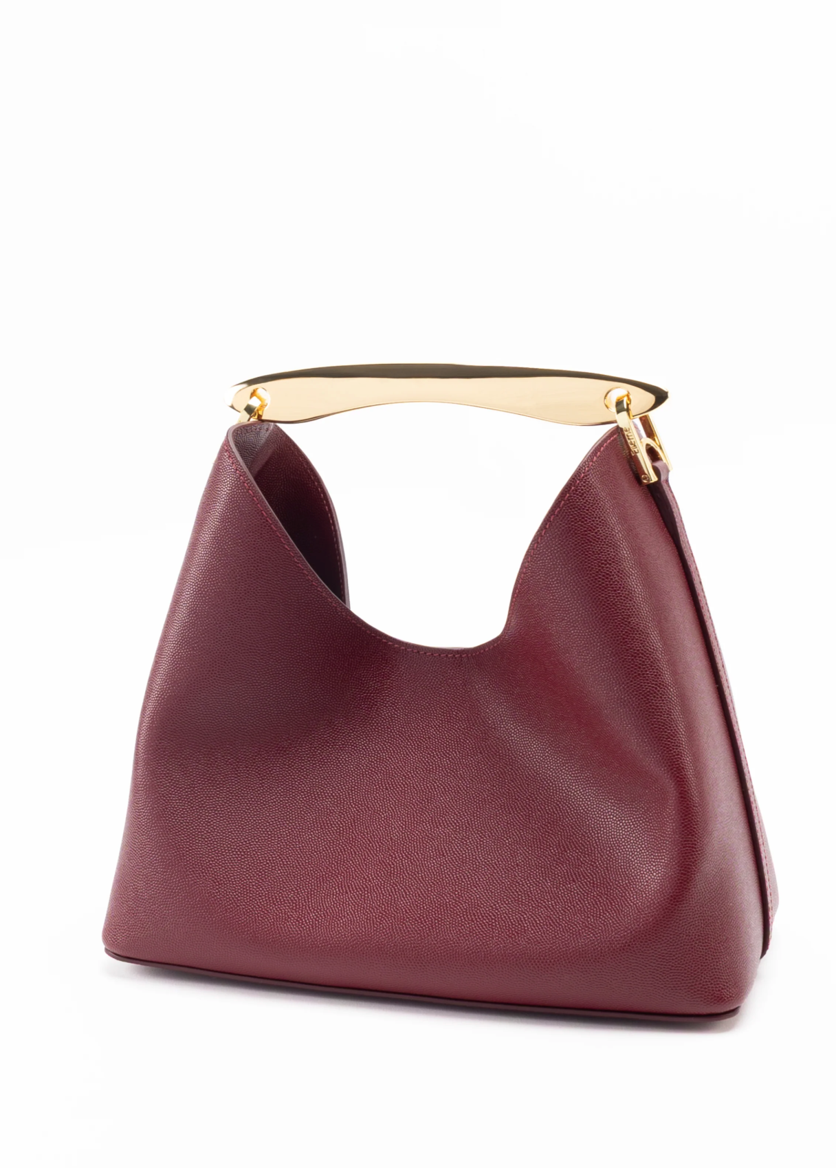 Fremhevet av et overdådig topphåndtak i metall, har Boomerang Large den karakteristiske Elleme-formen, som symboliserer uanstrengt chic eleganse. I en dyp burgunder farge i luksuriøst lammeskinn fra Italia, symboliserer Elleme en tidløs og raffinert veske som blir et must have i garderoben! Elleme - "She loves"