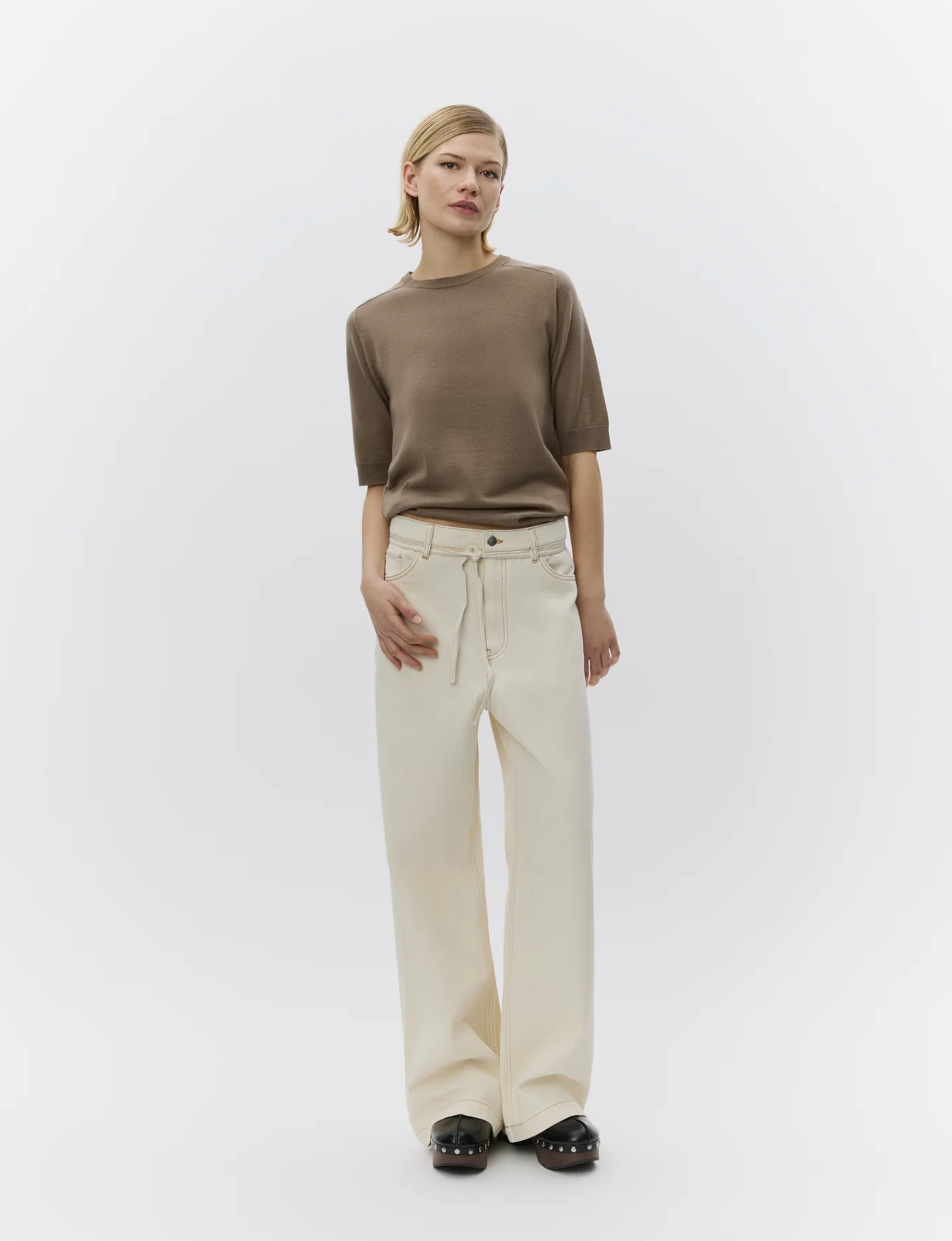 Elijah - Nature Denim fra DAY Birger et Mikkelsen. En jeans uten stretch i 100% bomull. Den har en løs og oversized passform. Buksen har rette ben og lukkes med glidelås og knapp. Den har et tynt belte ton-i-ton rundt livet, som også kan tas av. Dette er blitt en bestselger, så vær rask om du ønsker å sikre deg din størrelse.
