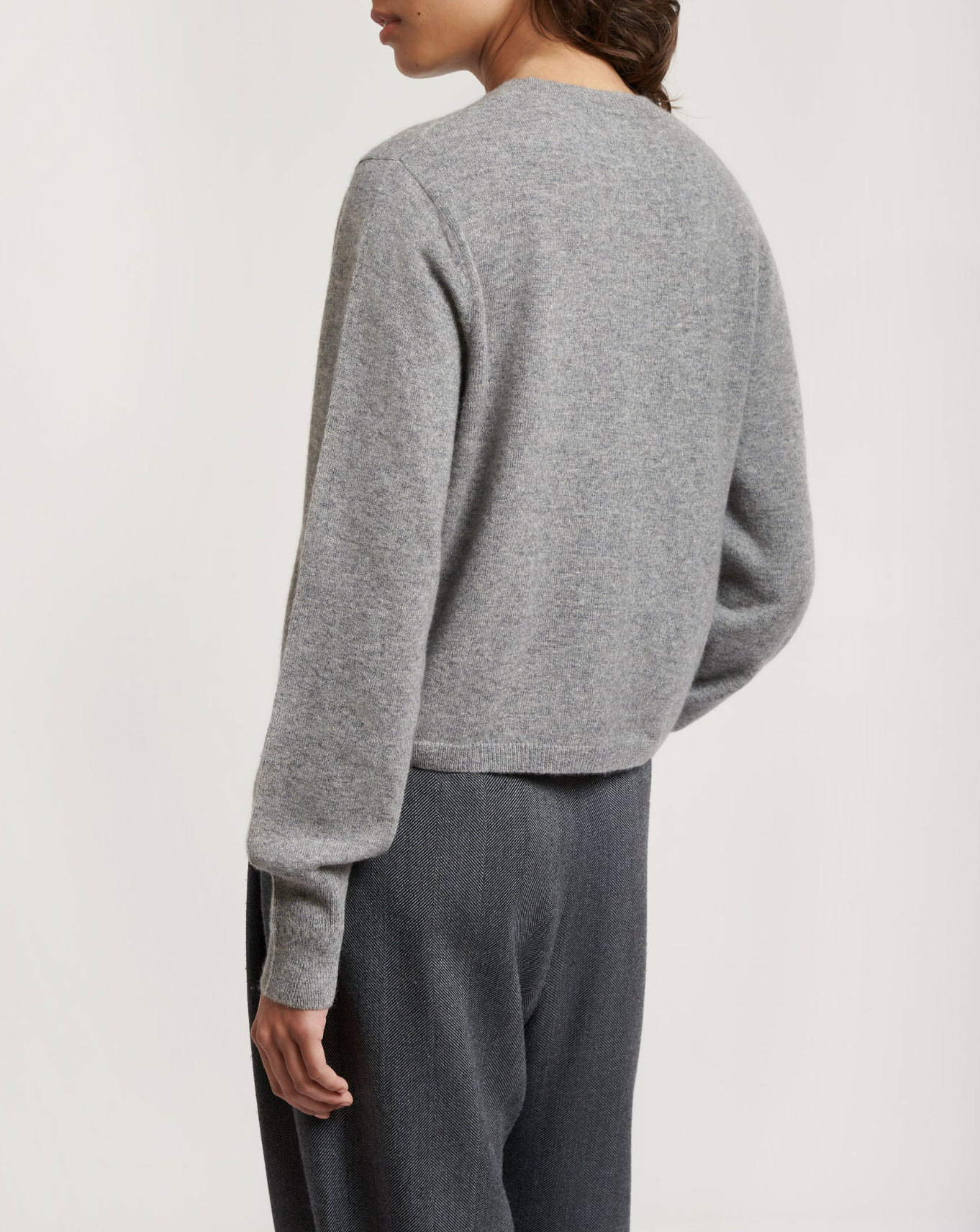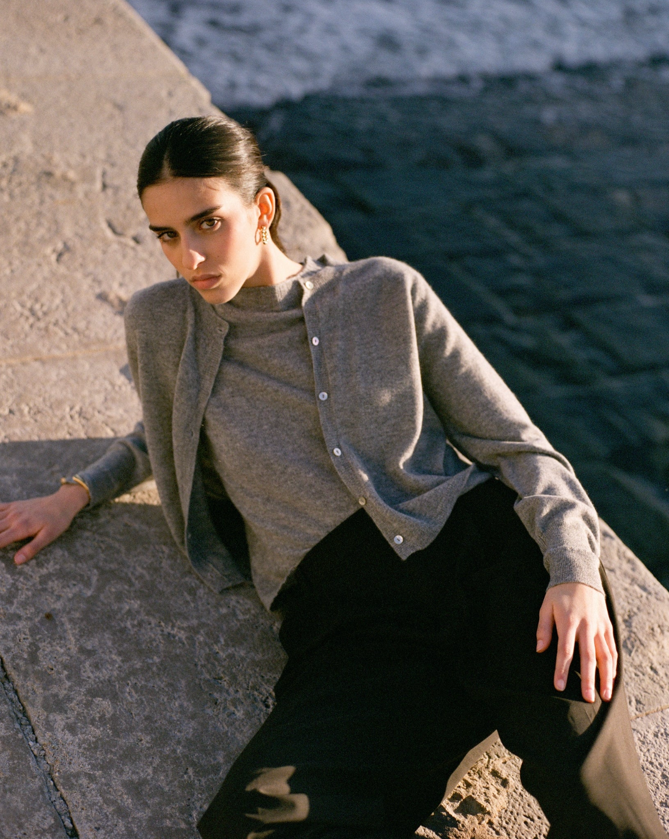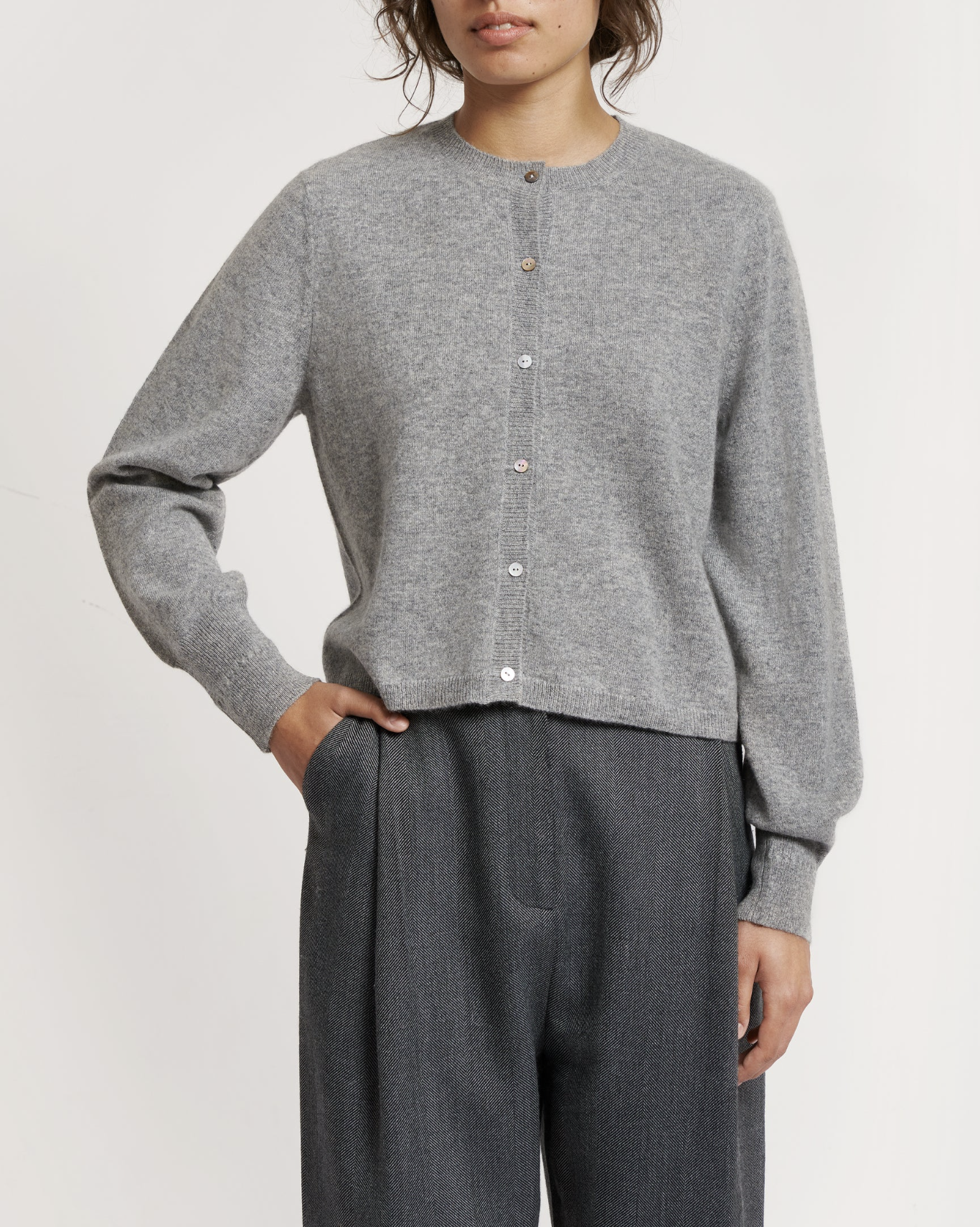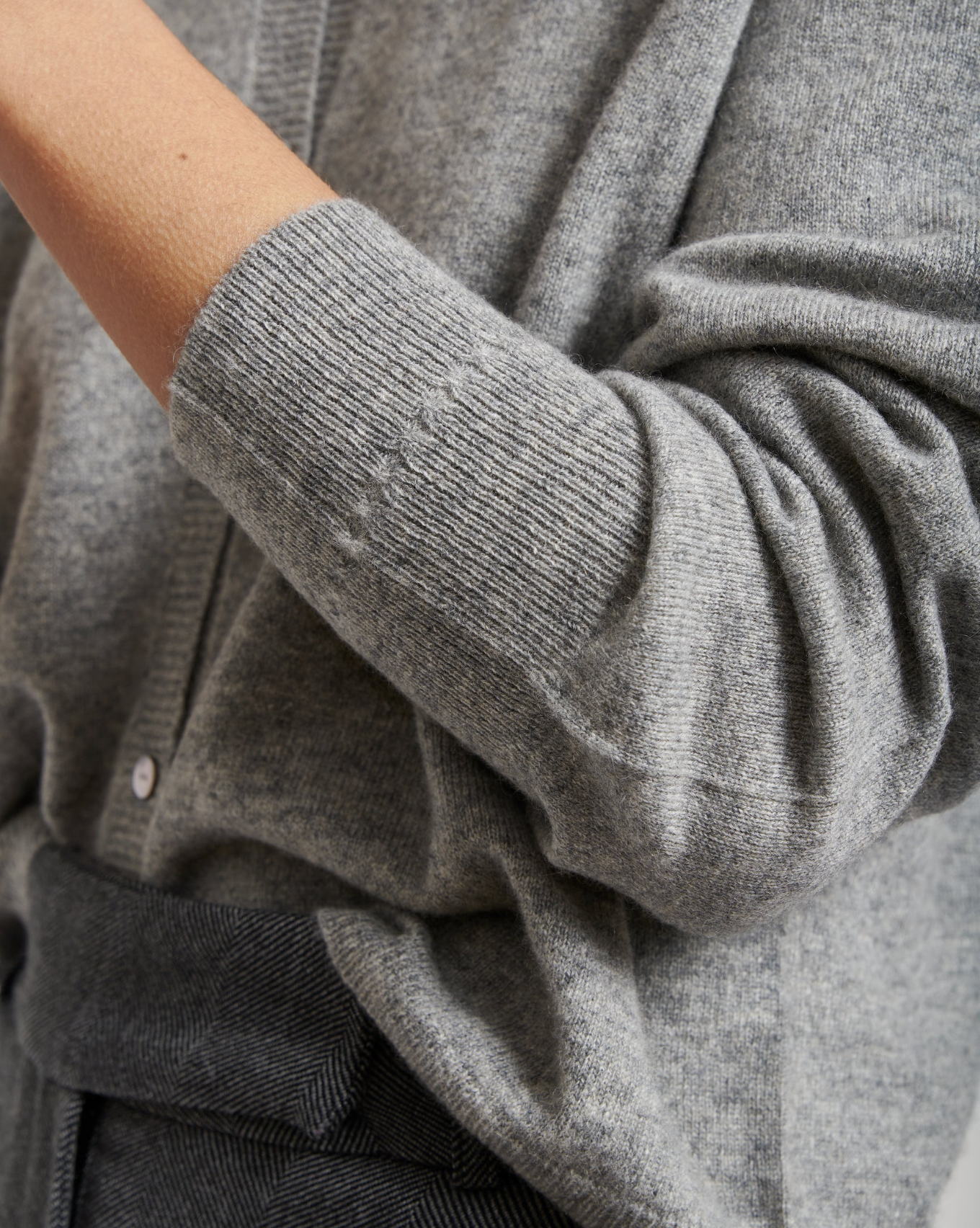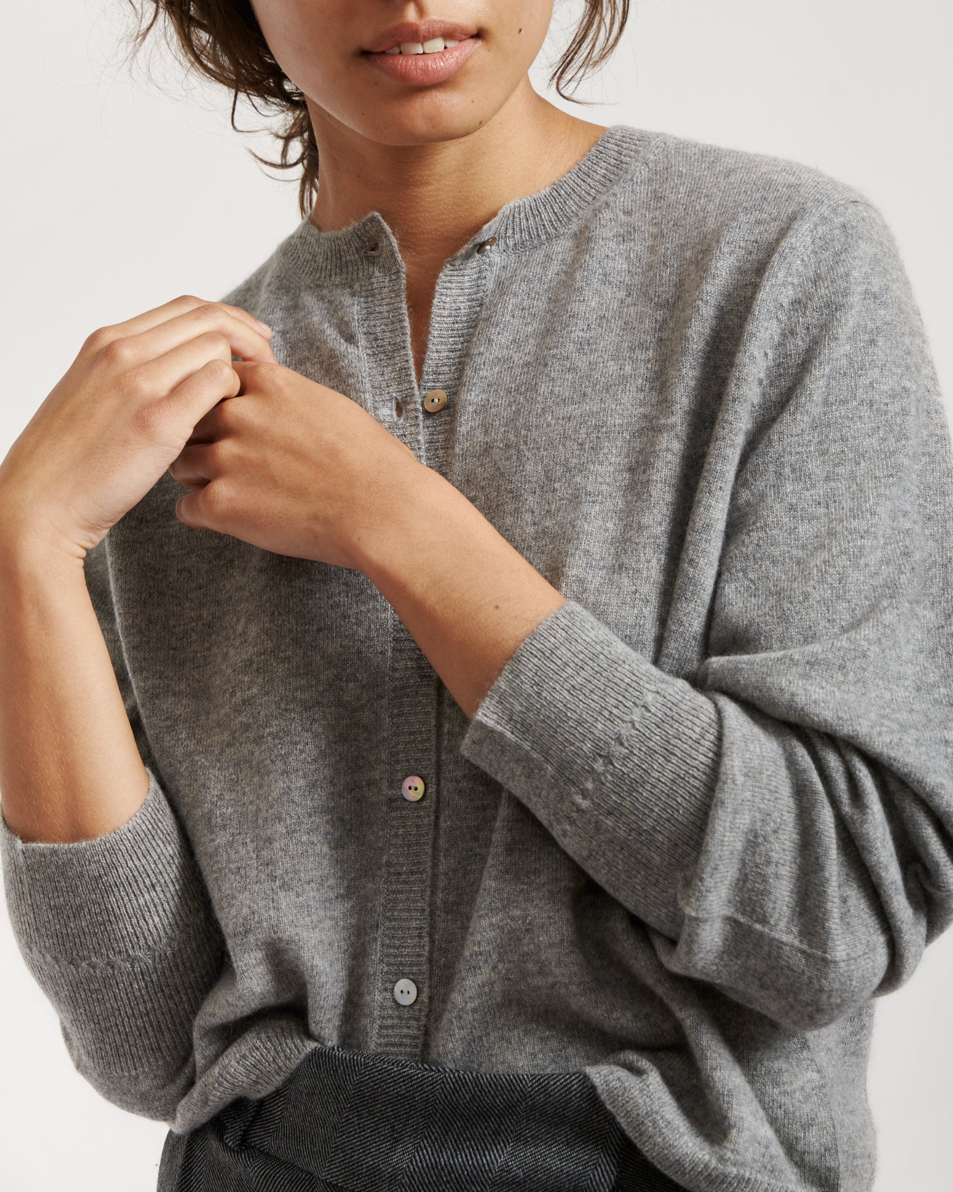 Quinn cardigan fra Santosh er idealet av nordisk design, laget av deilig mongolsk kasjmir. Cardiganen tilbyr en god kvalitet og en løsere passform, fullført med perlemorknapper. Den korte passformen komplementerer en høytlivsbukse, eller et delikat silkekjørt - denne kan du ta med den gjennom alle sesonger.