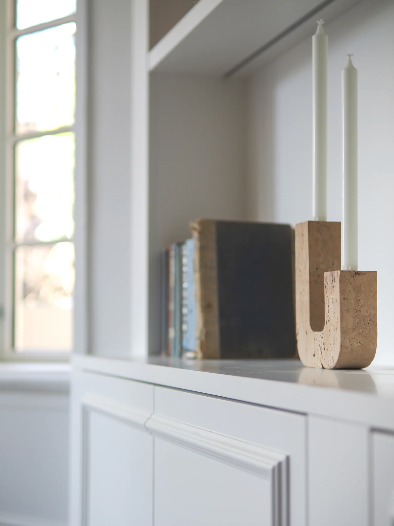 Loui Candleholder fra Meublé er laget av 100% Travertin, som et tidløst tilskudd til hjemmet. Lysestaken er laget av naturstein, som gjør at hvert produkt vil ha sin egen unike variasjon. Sett den i bokhyllen eller la den pryde spisebordet - Loui er perfekt til et hvert hjem!