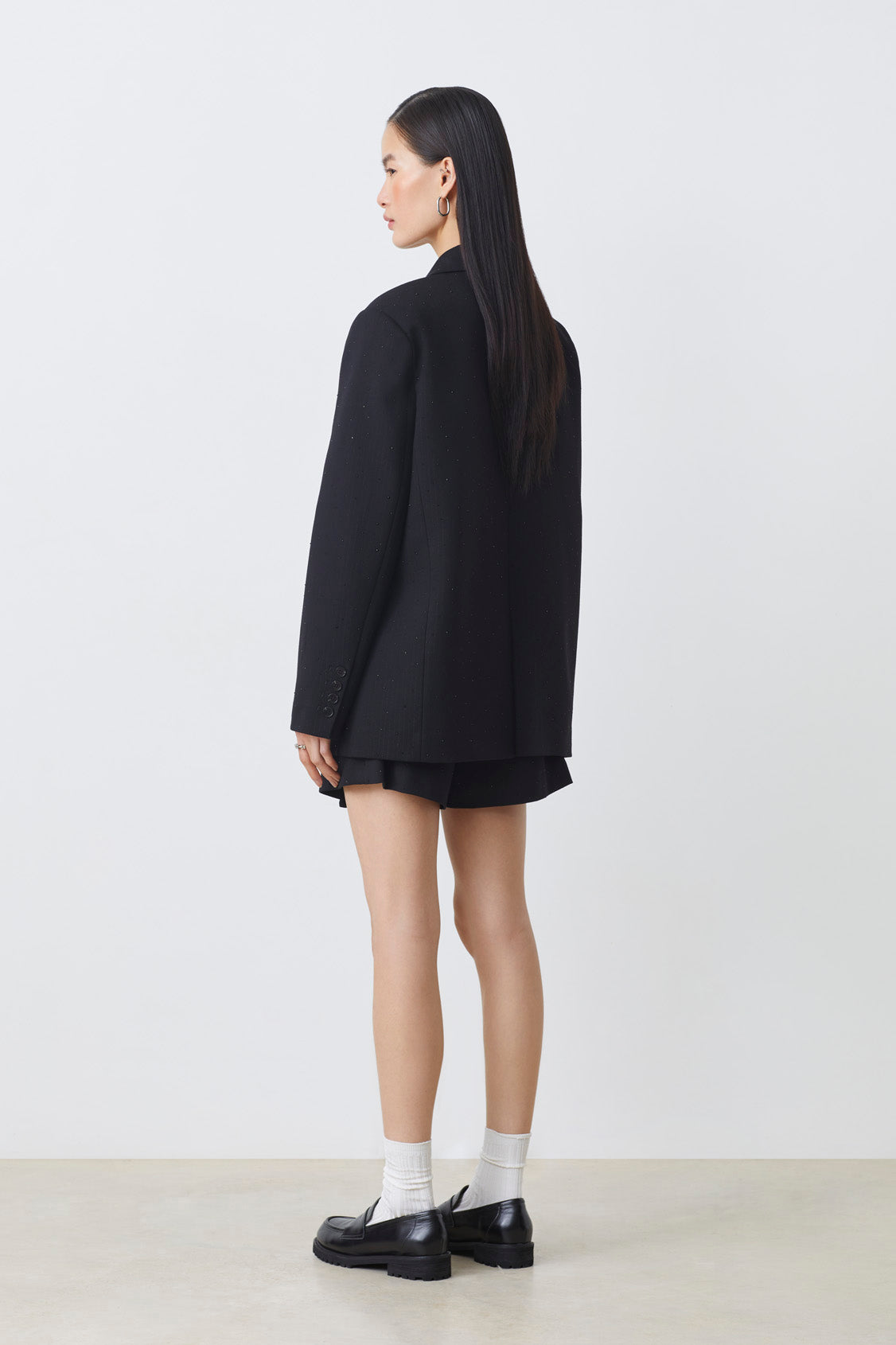 Darko Blazer er Suncoo sitt svar på den klassiske mørke blazeren - med sin maskuline og noe overdimensjonerte silhuett. Blazeren er perfekt i kombinasjon med Bahia skirt og Derek Vest for et komplett sett. Dette er svaret på business casual, som enkelt kan pyntes opp og ned etter anledning!