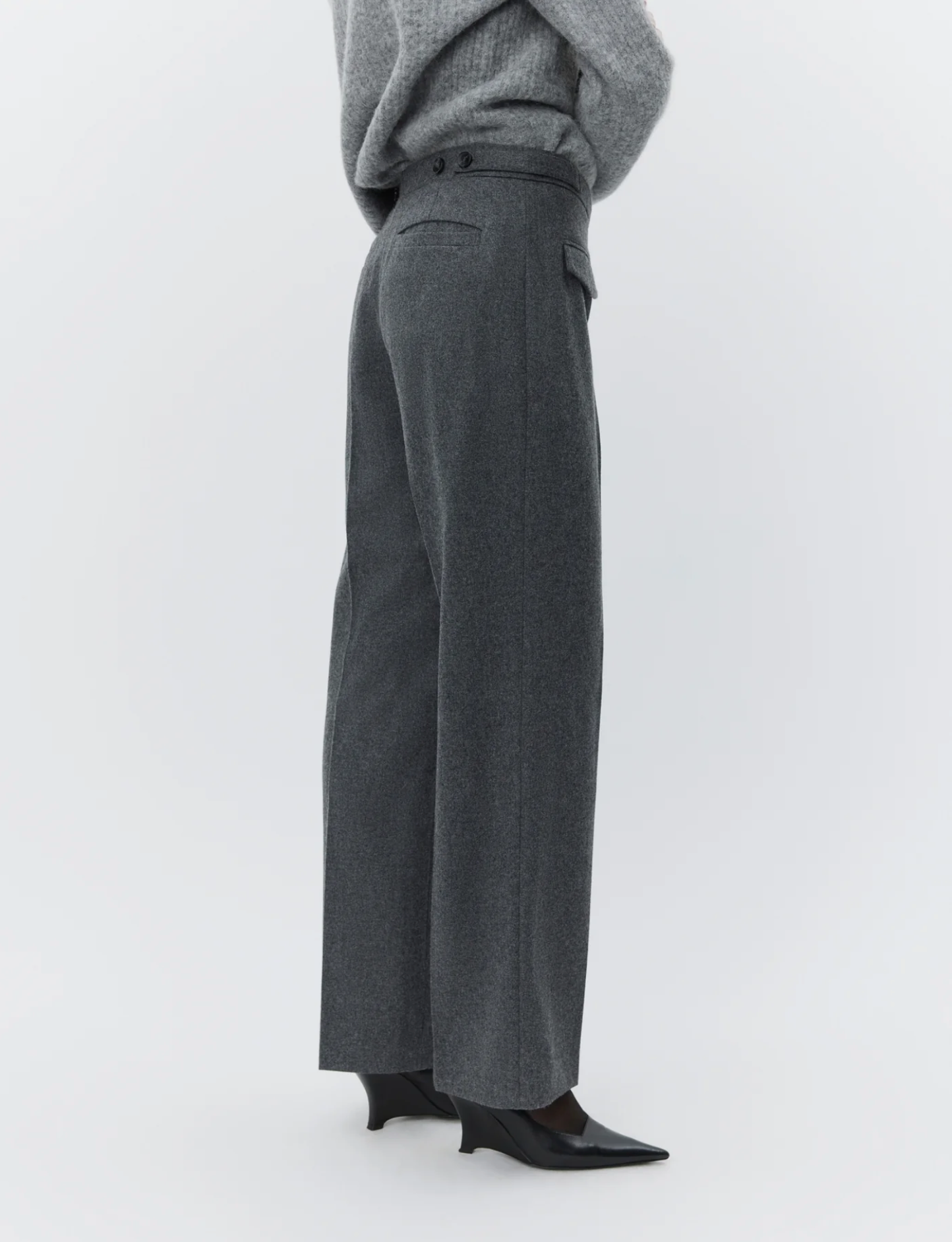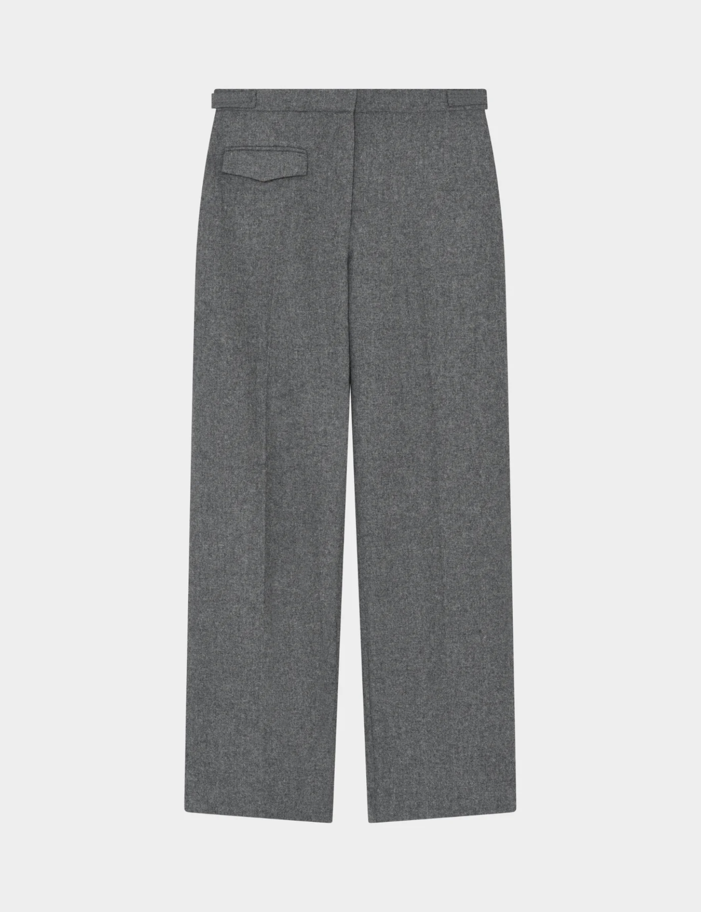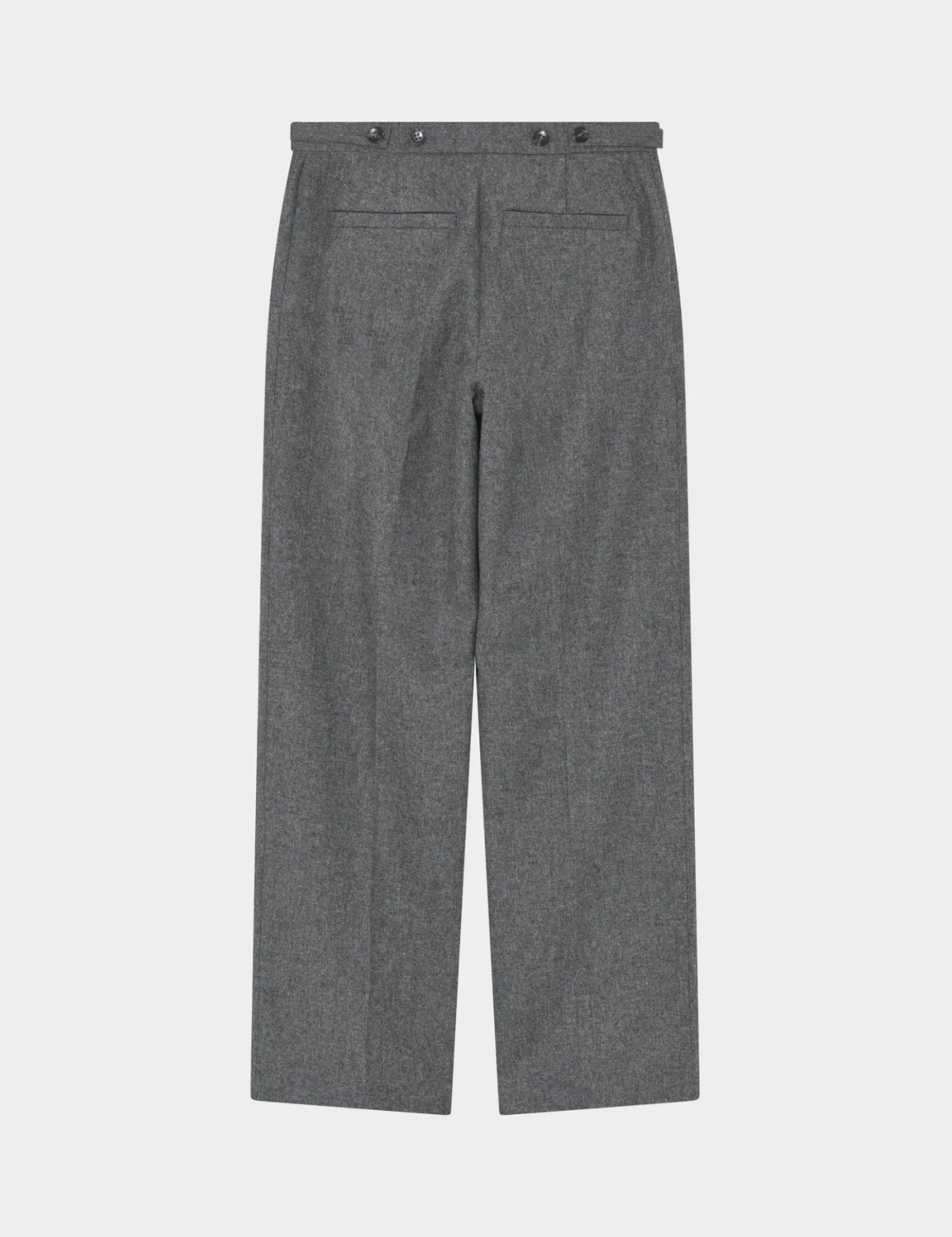 Thalia Melange Wool pants fra DAY er en dressbukse med mid-rise, rett passform, laget i en deilig ullblanding. Buksene har lappede lommer i front, og to lommer på baksiden. Buksene har en rett passform, og lekre knappedetaljer rundt midjen. Style med en enkel hvit t-skjorte og din favoritt kasjmirgenser, for en avslappet og elegant høstlook.