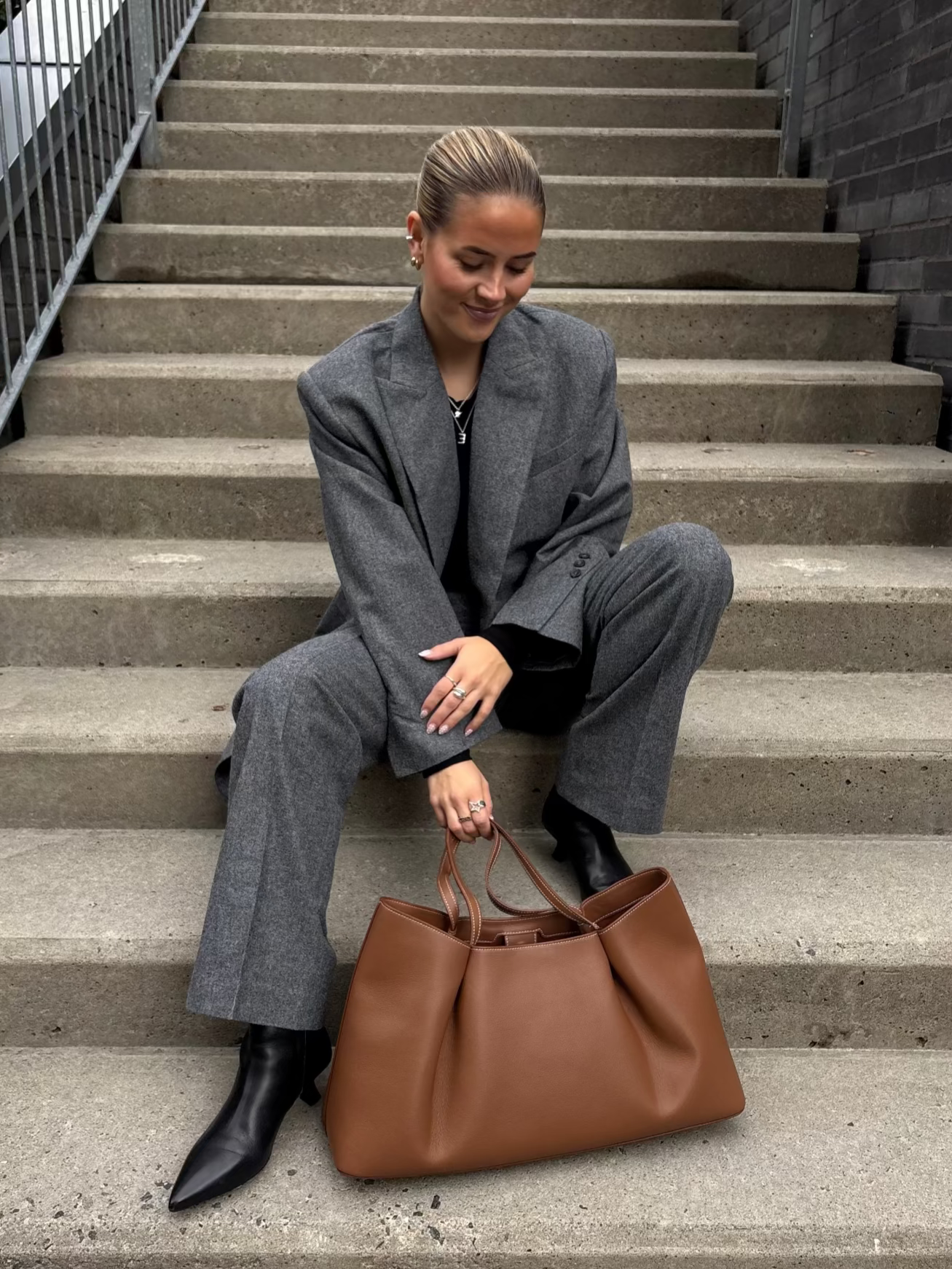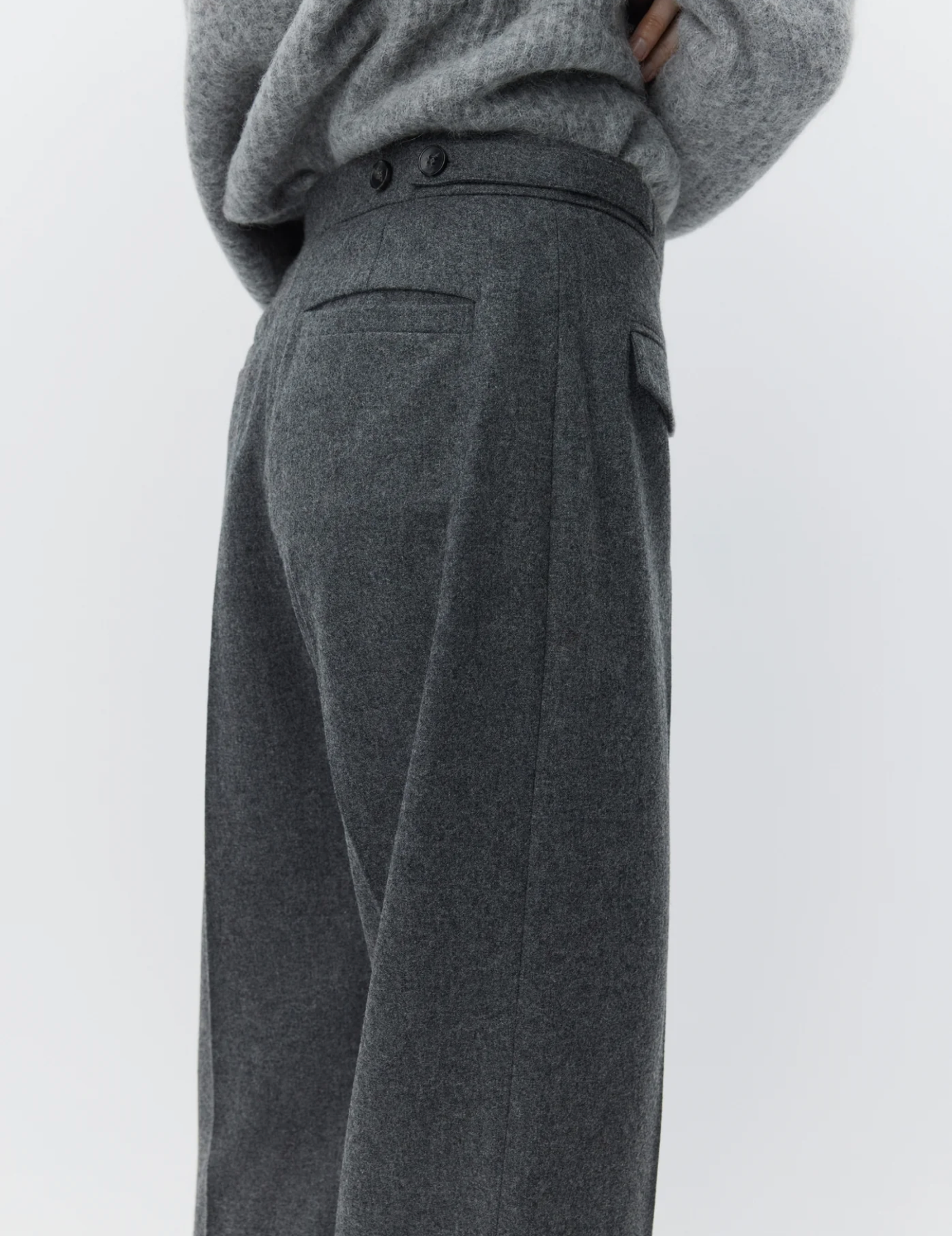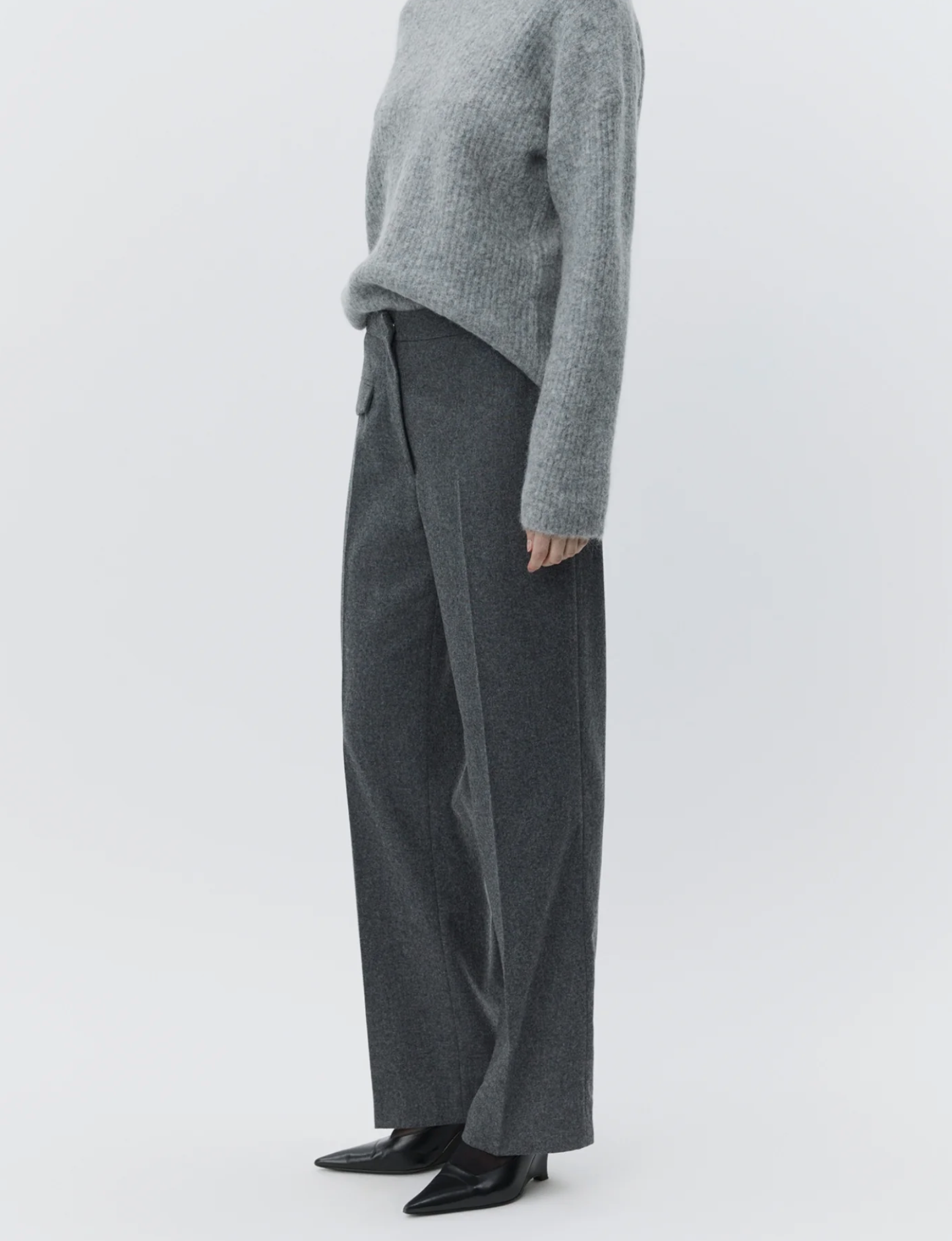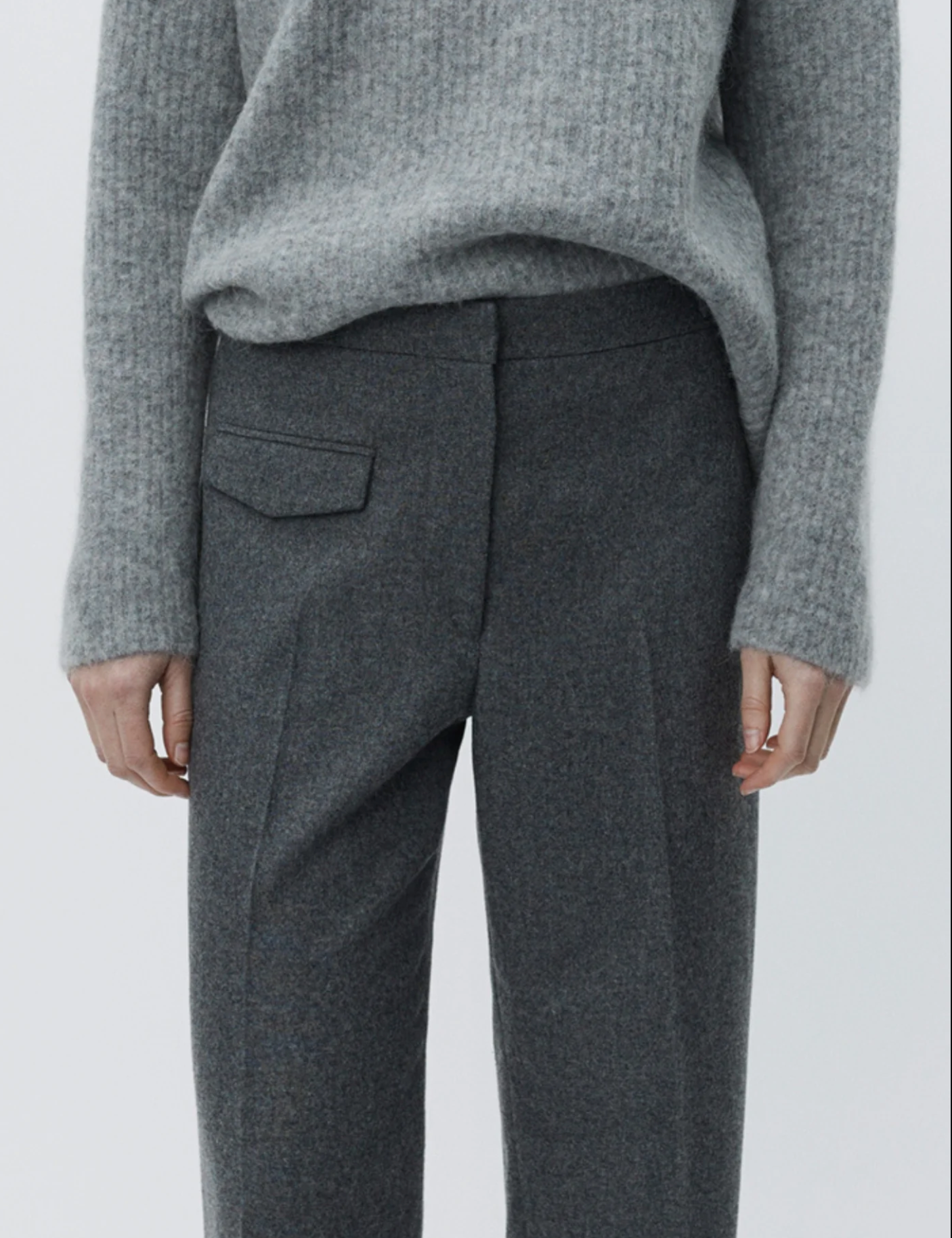 Thalia Melange Wool pants fra DAY er en dressbukse med mid-rise, rett passform, laget i en deilig ullblanding. Buksene har lappede lommer i front, og to lommer på baksiden. Buksene har en rett passform, og lekre knappedetaljer rundt midjen. Style med en enkel hvit t-skjorte og din favoritt kasjmirgenser, for en avslappet og elegant høstlook.