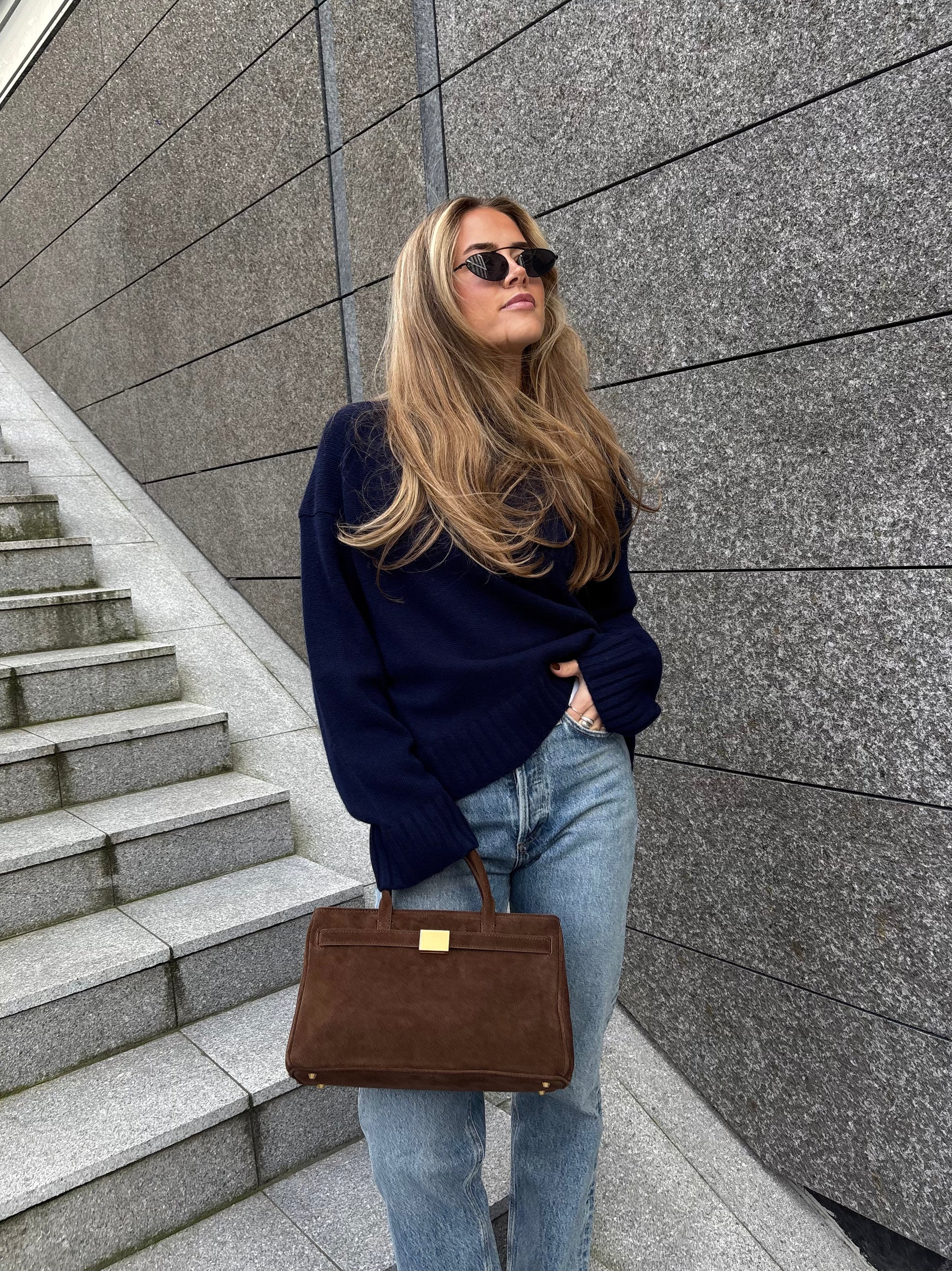 Glen soft lamb sweater fra DAY er en deilig og tykk lammeullsgenser, med en behagelig og løs passform. Genseren er lett og ledig, med detaljer som en hevet søm nedover ryggen, og ribbede kanter langs ermer, liv og håndledd. Kombiner med enzo pants i samme dype safirfarge for en monokrom og avslappet look.