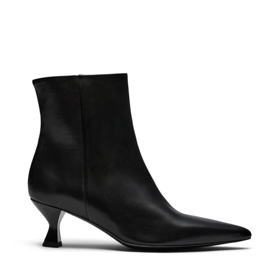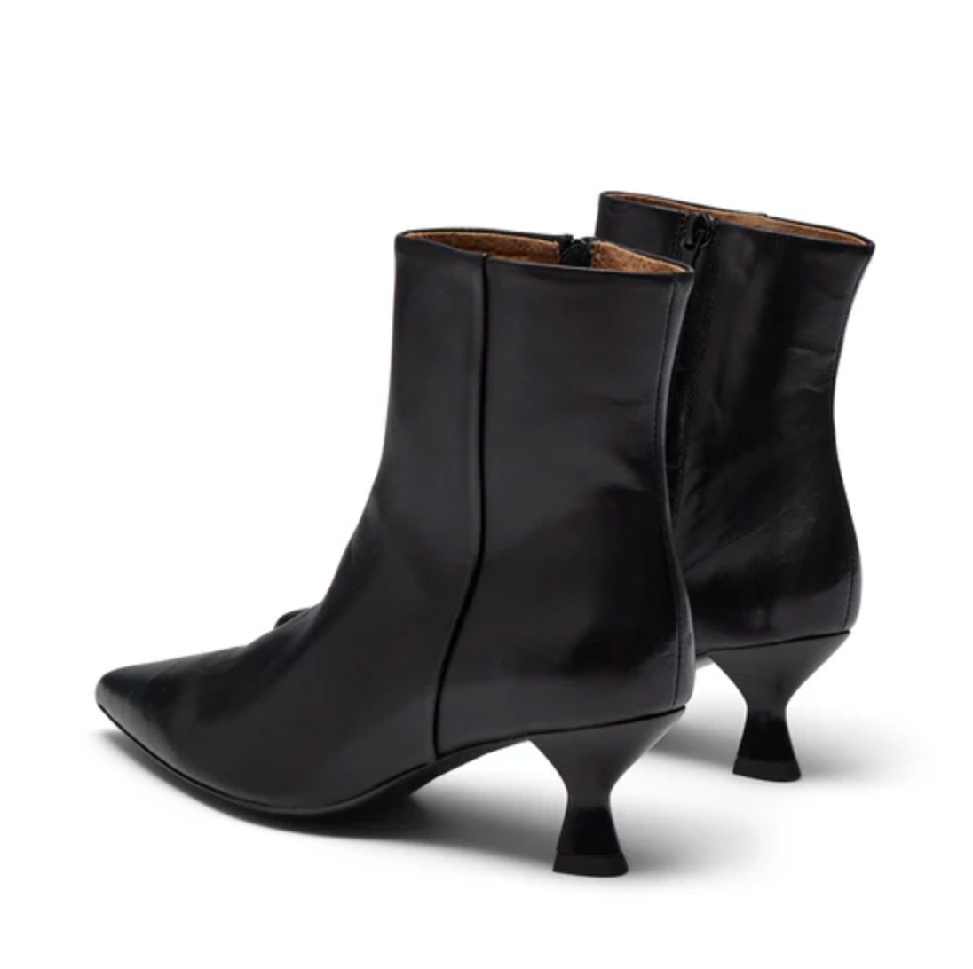 Wilma fra Pavement er et sett av elegante og frekke boots med det lille ekstra. Skoene har en spiss såle og slank silhuett, toppet med tynne kitten heels med bredere base å trå på. Dette skaper en klassisk sko med den lille vrien - for deg som ønsker en sko som er tidløs, med en wow-effekt. Laget i høykvalitets skinn, er dette både en stilren og komfortabel sko å ta med seg i sesongene fremover.