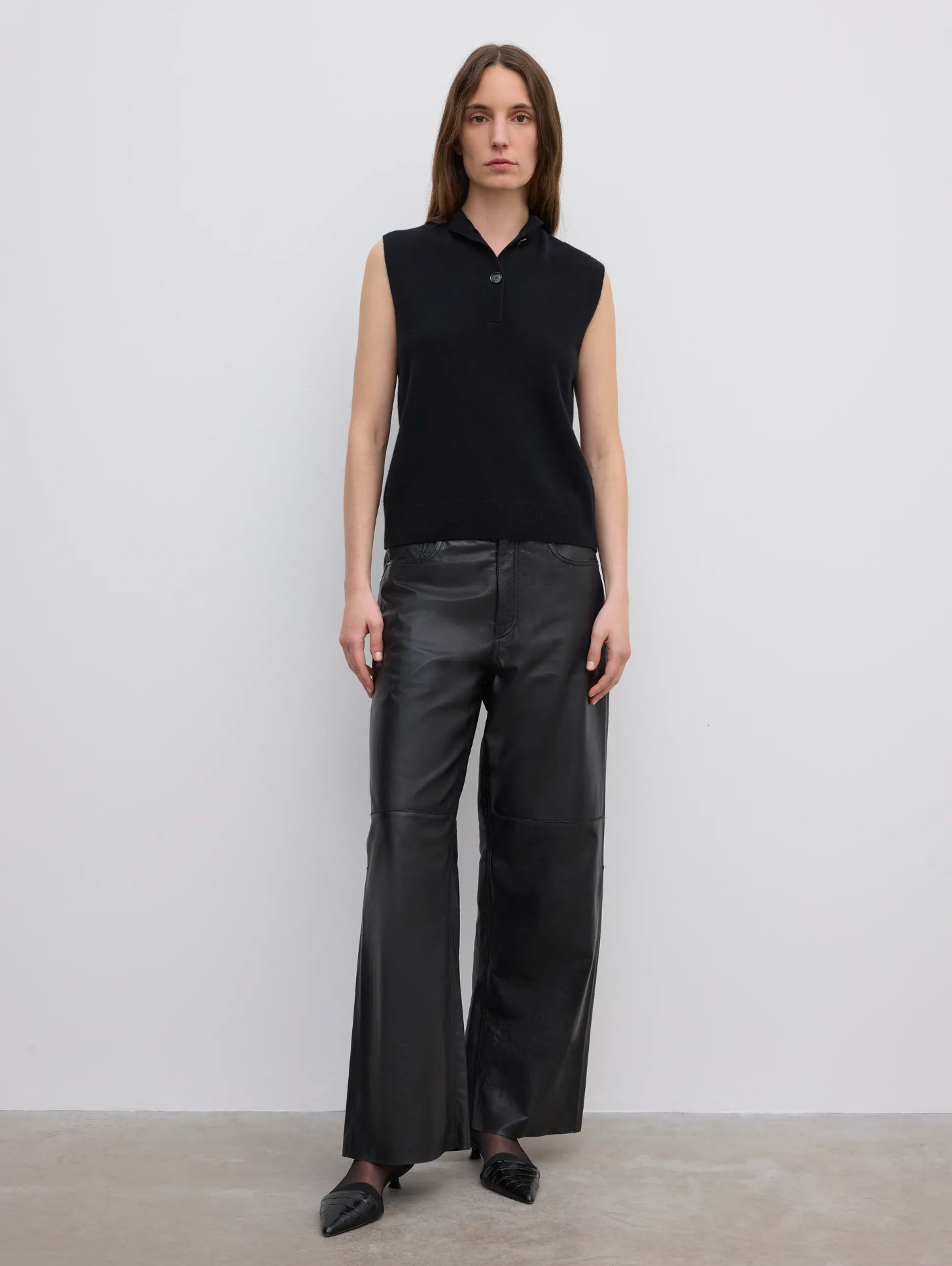 Sleeveless knit top black fra Dagmar er en myk strikket topp i kasjmirblanding, med en mock neck og dekorative knapper i front. Toppen er den perfekte base med det lille ekstra, raffinert og detaljrik - anvendelig til din favorittjeans eller en sofistikert blazer og dressbukse.