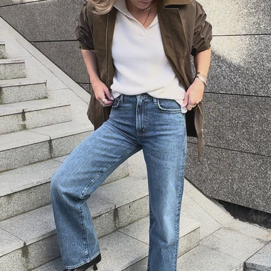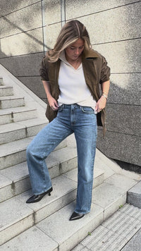 Field Cotton Jacket fra Dagmar er en oversized og behagelig høstjakke laget i vannavstøtende italiensk bomullscanvas. Jakken har er vid silhuett, påsydde patchworklommer, og en skjult glidelåslukking. Field er detaljert med krage og detaljer i kontrasterende brun kordfløyel, med knytebelte i livet for en tilpasset figur. En base og viktig staple for høsten, enkelt å style inn i et hvert klesskap
