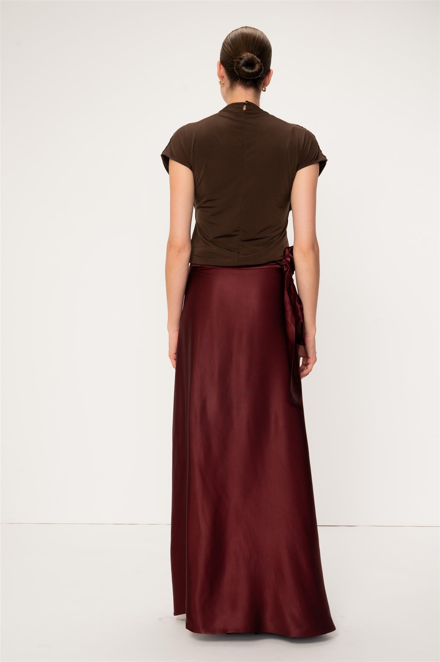 Hazel Skirt Burgundy fra Viveh er et omslagsskjørt i maxi-lengde med en flytende silhuett. Laget av en elegant rayon og viskose-sateng, føles den luksuriøst myk mot huden. Hazel tilbyr allsidig styling, som fungerer som en kjole for ekstra funksjonalitet i garderoben din. På grunn av det figurkomplimenterende omslagsdesignet, kan skjørtet enkelt justeres for å passe perfekt til kroppen din.