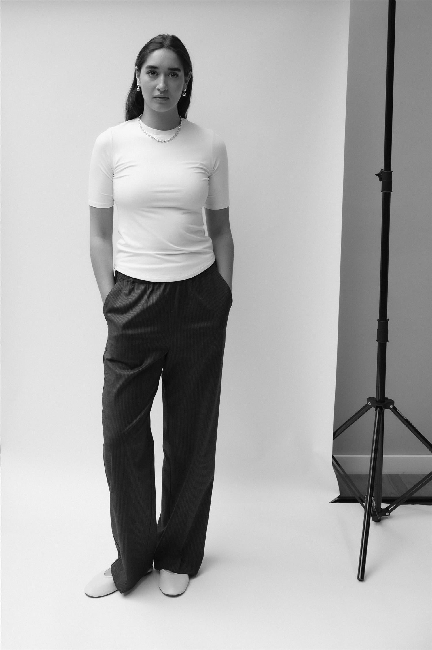 Spica er designet med en rund hals, medium lengde ermer, og en svak kurvet søm. T-skjorten gir en skulpturert passform som er vakker alene, eller i en lag-på-lag kombinasjon - alldisig til et hvert antrekk!