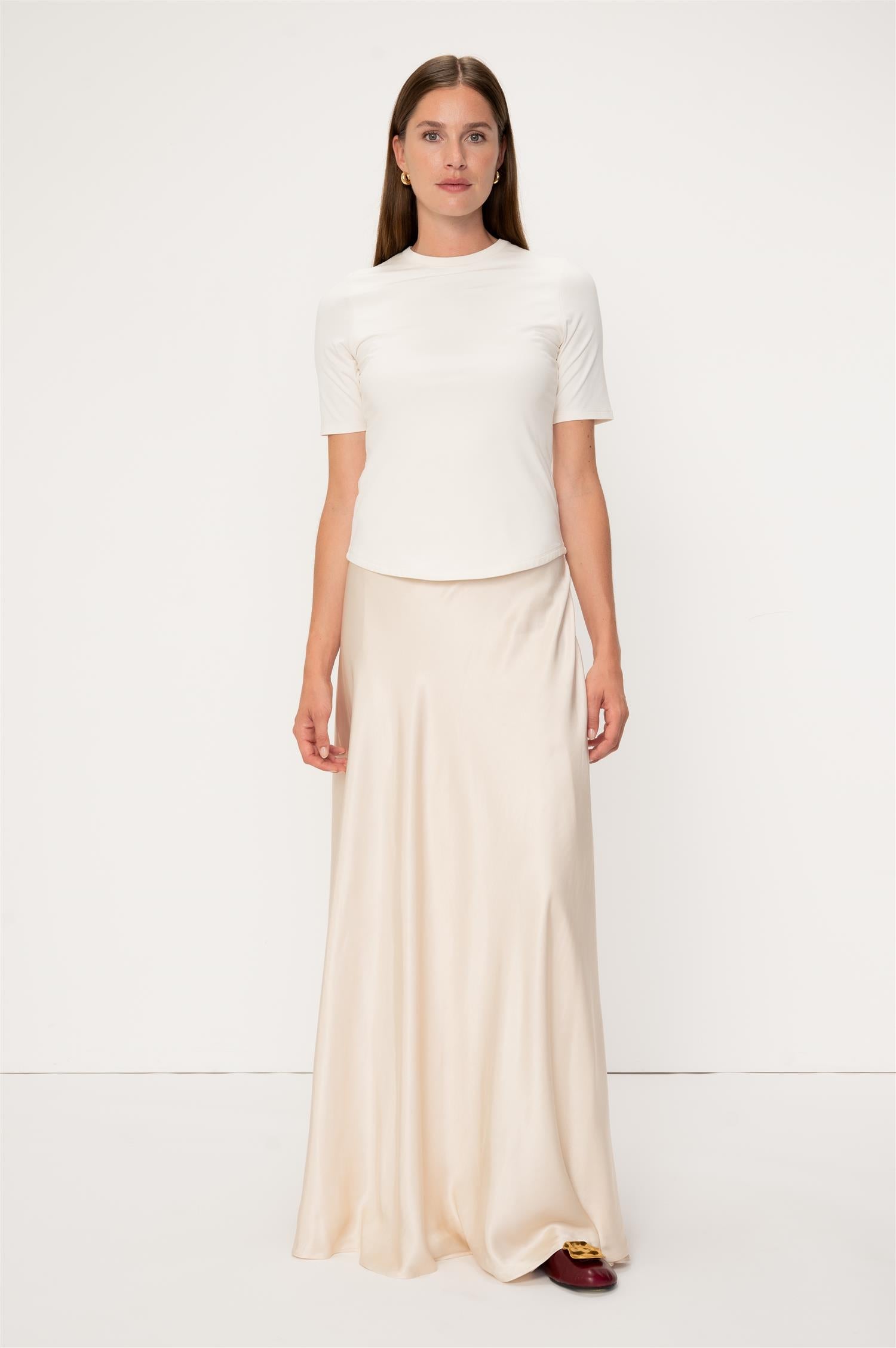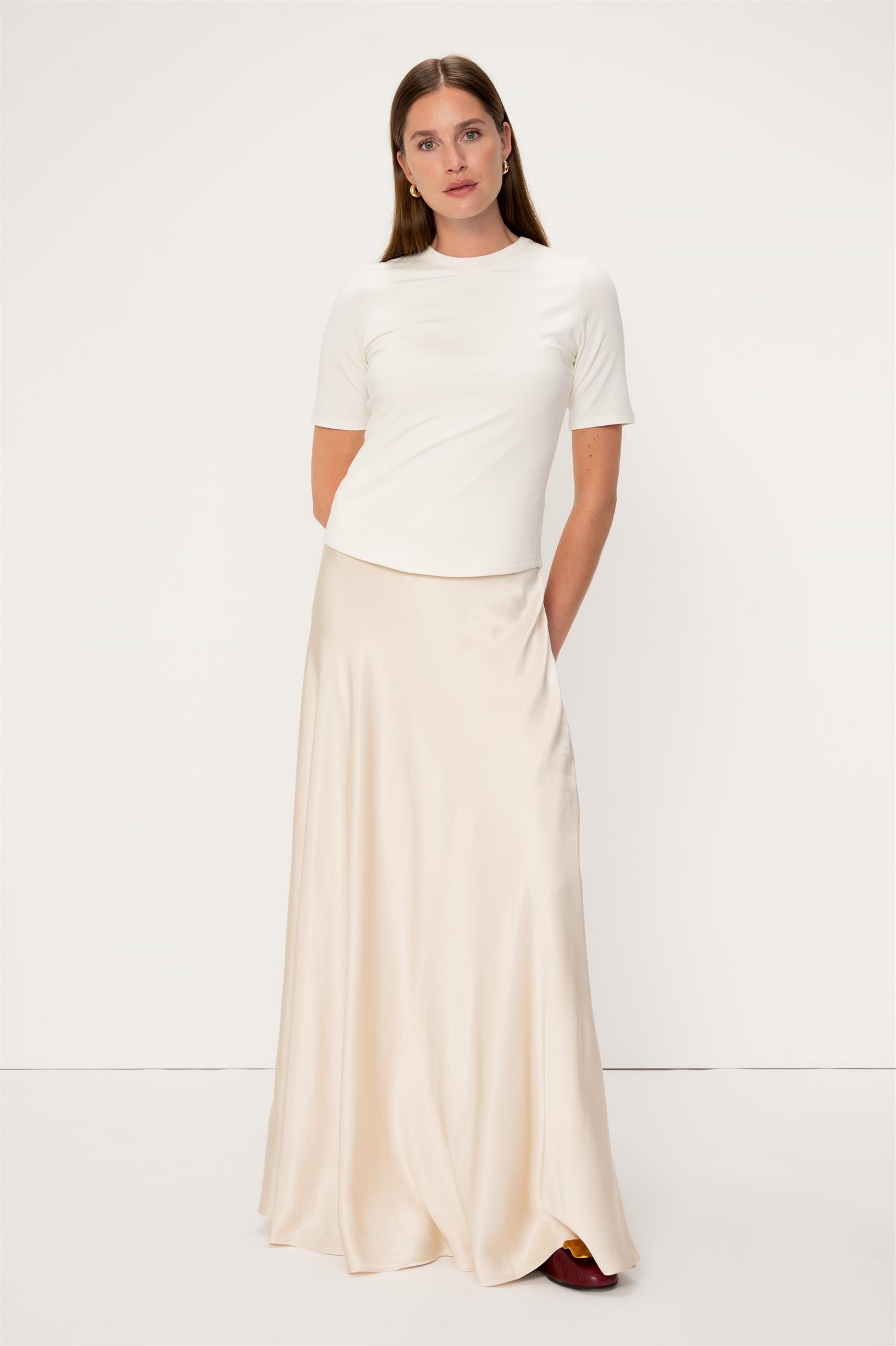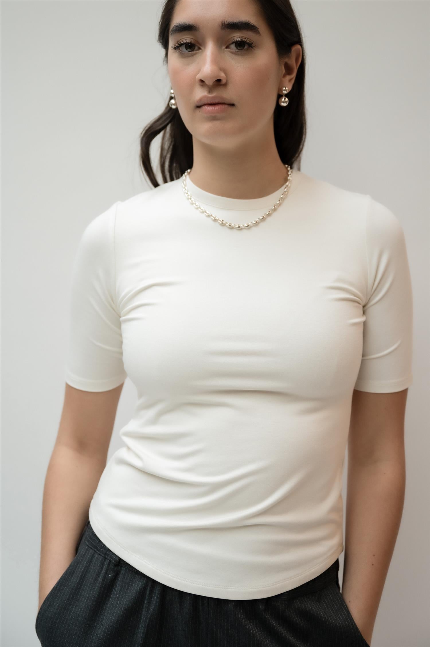 Spica Top Coconut Milk fra Viveh er base t-skjorten med et løftet og rent uttrykk. Toppen er laget av en myk og strukturert ECOVERO™ viskosejersey med dobbel fôring for god dekkevne og komfort.