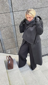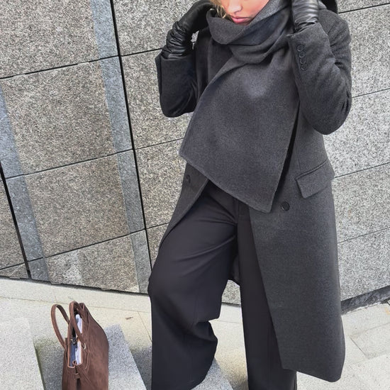NYC Coat fra The curated er laget for å tilføre den strukturerte ytterjakken en skandinavisk luksus. Kåpen har en rett passform som rekker til knærne, utstyrt med dobbel brystning og lommeklaffer. NYC er laget fra en myk kasjmir- og merinoblanding, fôret med silke. Det finnes også tilhørende skjerf.
