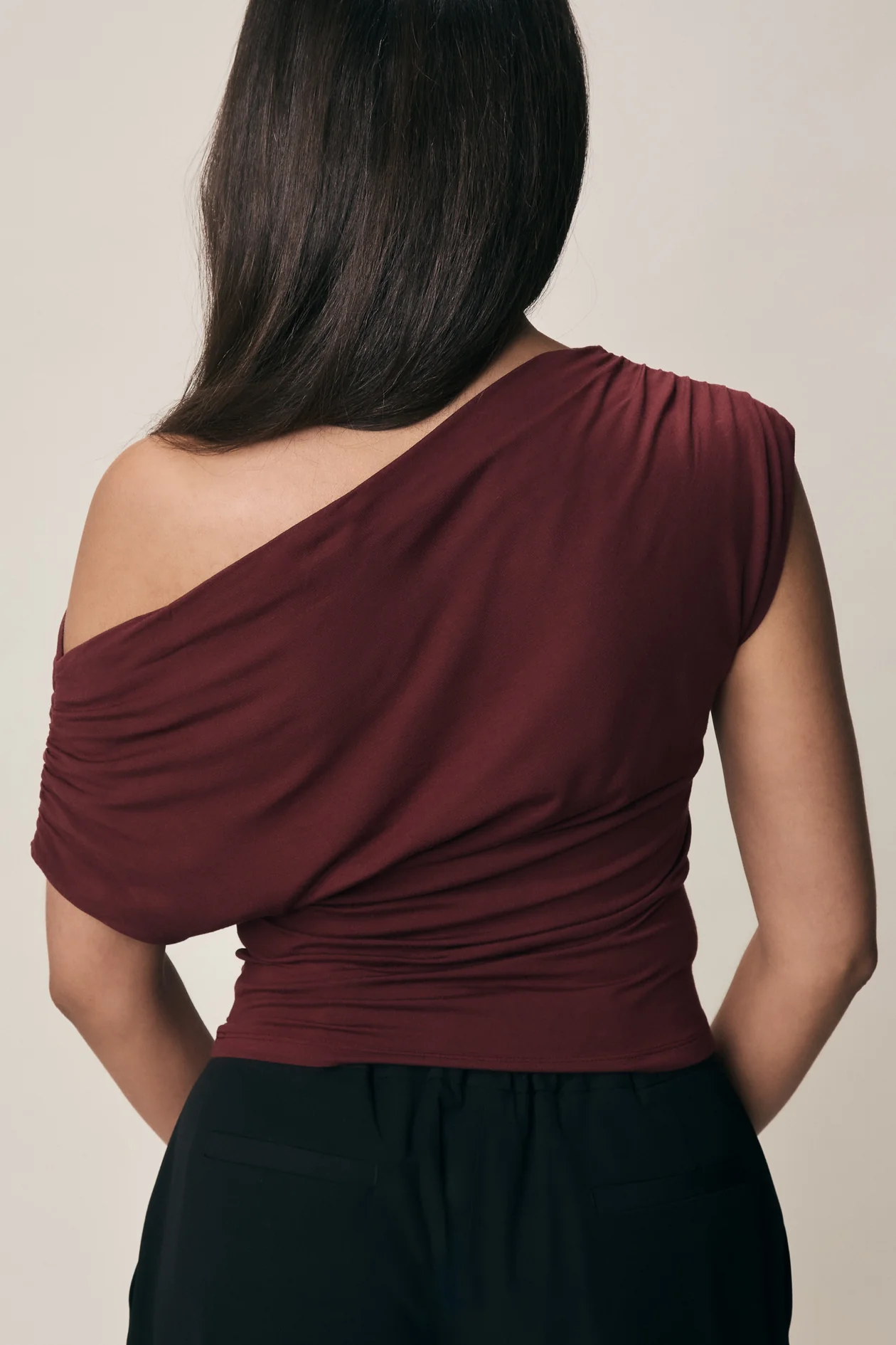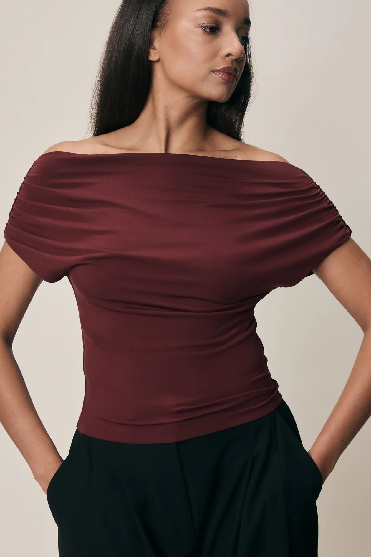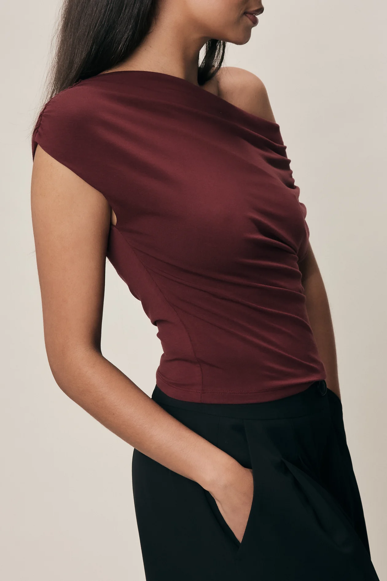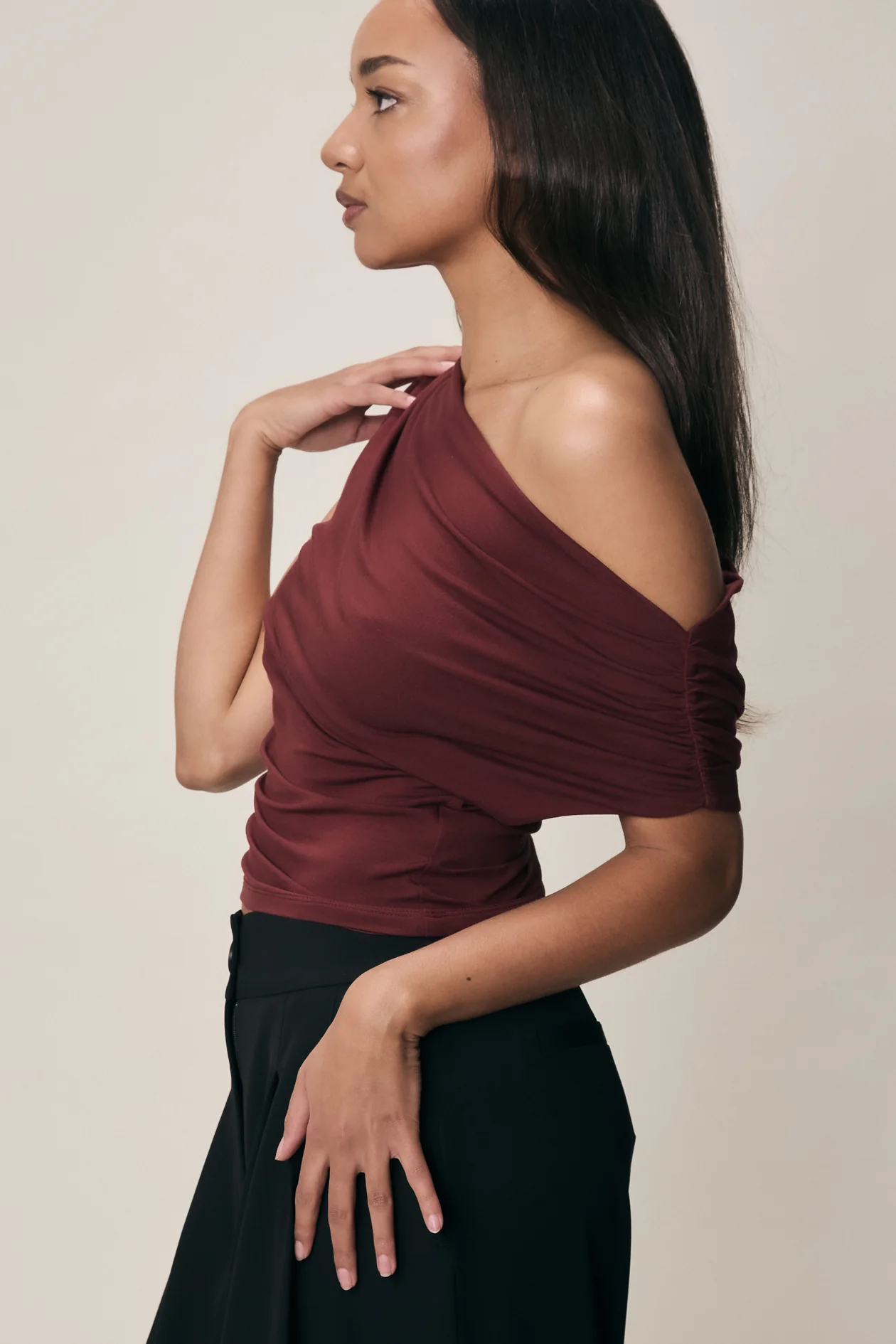 Ruta Top Pomegrante fra VIVEH er den perfekte avslappete og raffinerte toppen med en vid utringning - i en rødtone. Dette skaper en flott drapering av toppen over brystet, og gjør at den kan brukes både on- og off shoulder. Den nedre delen av toppen har dobbel foring og en strammere passform for ekstra støtte. Bruk sammen med en løs jeans for en casual look, eller style opp med en pen dressbukse.