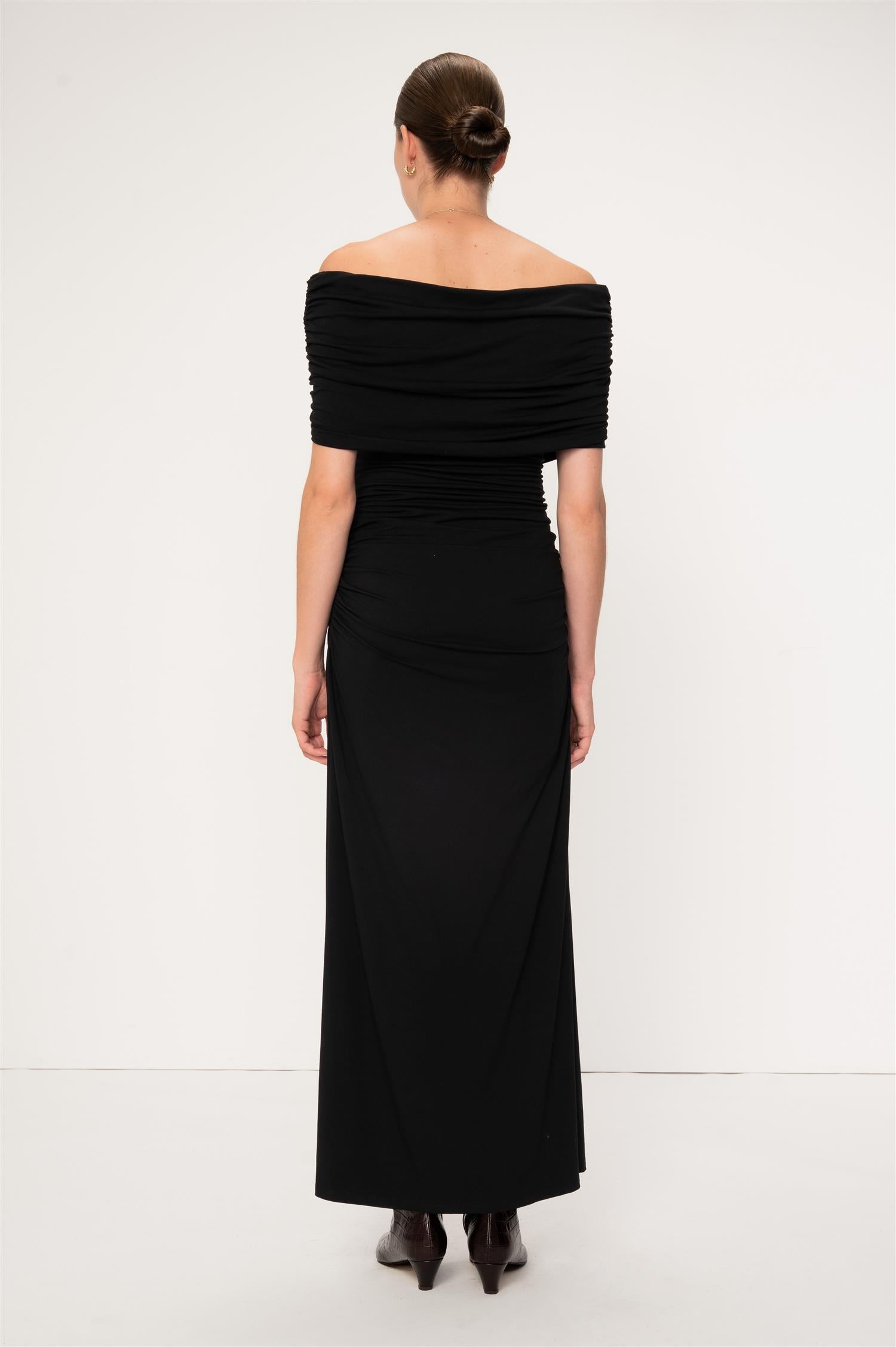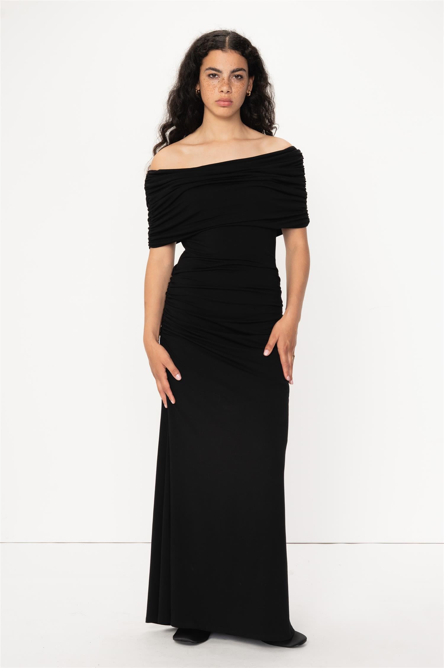 Giada Muse dress fra VIVEH, inspirert av bestselgeren "Giada top" fra samme merke. Dette er en nydelig ettersittende kjole med samme multifunksjon som deres originale topp, mulig å bære over skuldrene eller på tvers over brystet. Kjolen har en svak hold-in effekt, med en flatterende utsvingt silhuett på skjørtet. Den perfekte elegante kjole til julebordssesongen, for en "Silent luxury"-look.