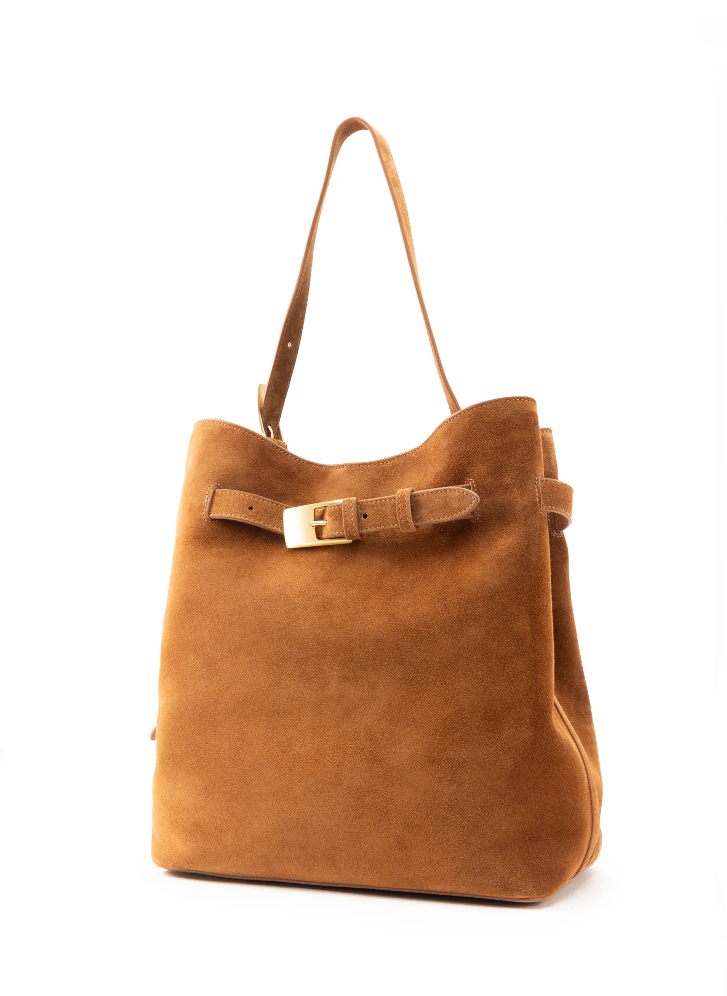 Belt Bag Suede Cognac fra Elleme. En allsidig og stilig myk tote-veske designet som din perfekte hverdagsvenn. Med justerbart belte og signaturspenne kombinerer denne vesken uanstrengt praktiskhet og eleganse.