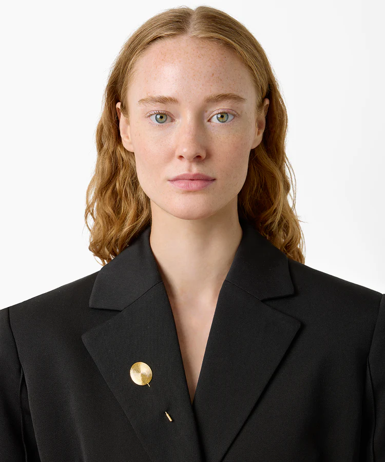 The Elo Pin Gold fra Lie Studio. Et nytt tilskudd til LIÉ-universet, Elo Pin, gir en ny vri på den vintage jakkeslagsnålen i en elegant, spiralformet form. Bruk den på en blazer, skjerf eller hvor enn dine stylinginstinkter tar deg. En liten detalj med personlig inntrykk.