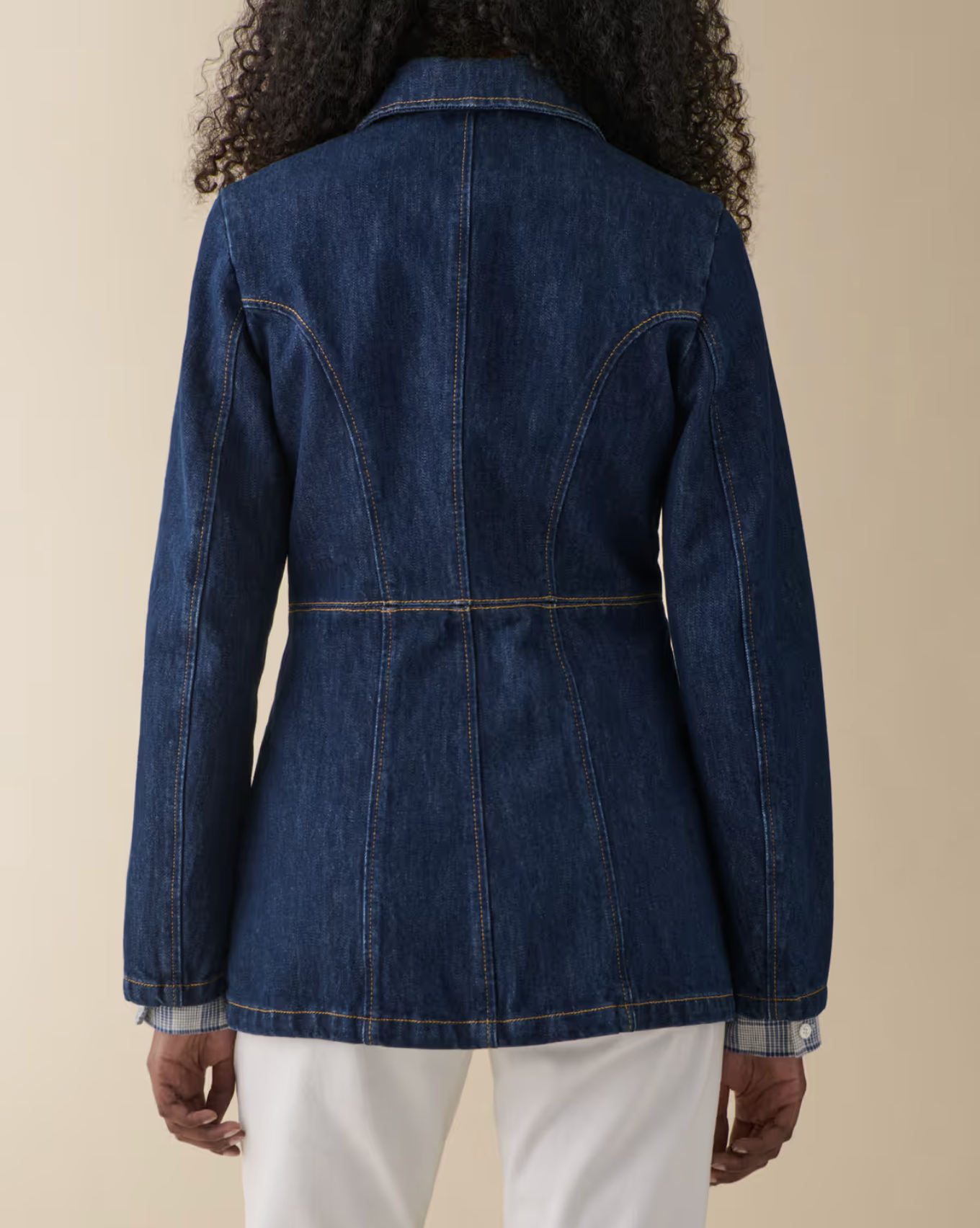 Agnes jacket fra Jeanerica er en nøye skulpturert denimjakke, laget med fire lommer med dekorerte klaffer. Jakken har en søm som fremhever den kvinnelige silhuetten, som svakt klemmer rundt midjen for å fremheve kvinnelige former. Agnes lukkes enkelt med knapper i front, og har en ekstra lengde for å fullføre den elegante silhuetten. Et plagg laget av kvalitetsbomull, i en dyp Indigo. Jakken er en klassiker i klesskapet, en denimjakke med raffinert preg - perfekt til å style opp med dressbukser, så vel som jeans.