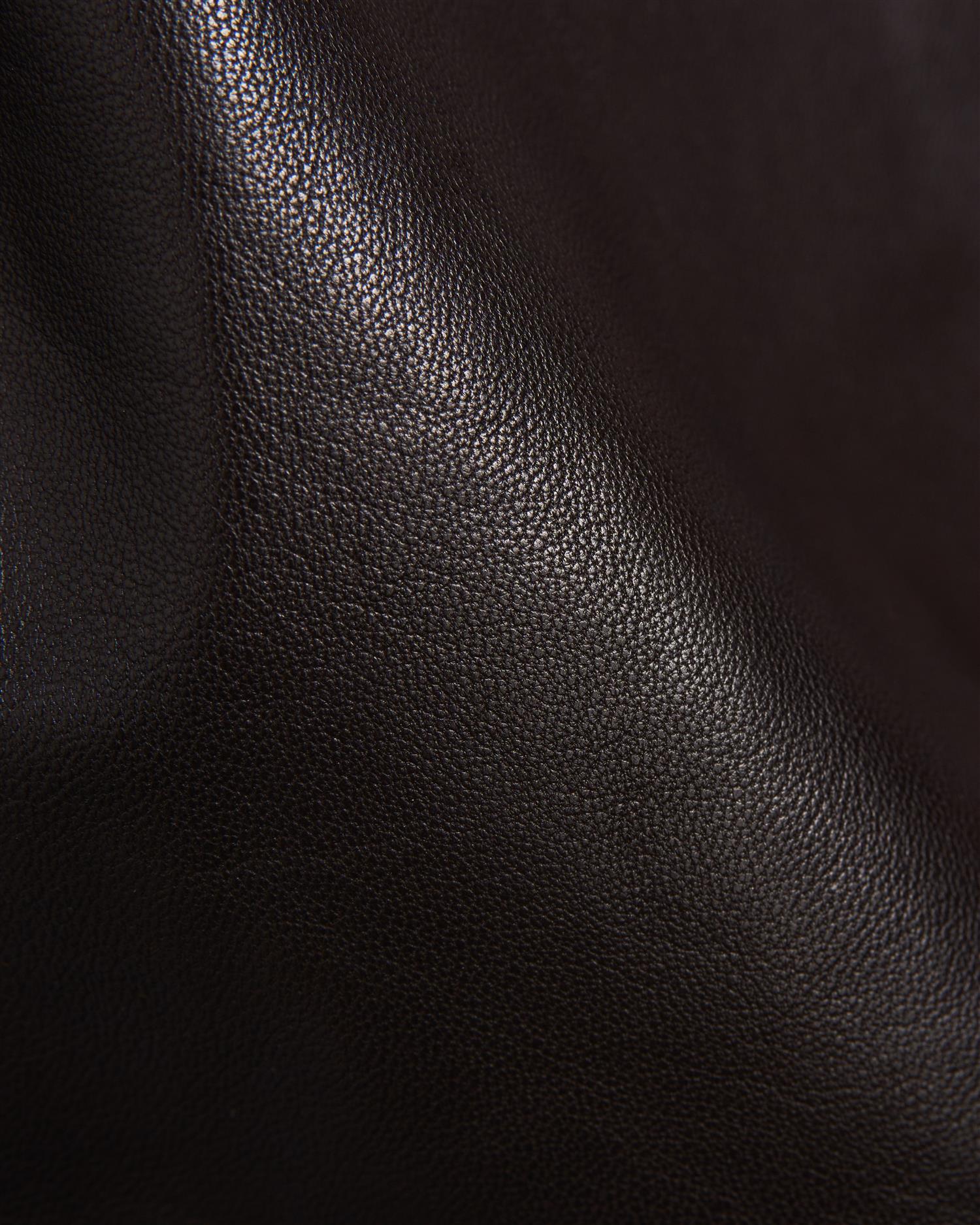 Sunset Leather Top Espresso Brown fra Iben. Sesongens it-topp. Toppen har rund hals med korte ermer og skulderputer. Den har en smal og kortere passform som gjør den perfekt å bruke sammen med vide bukser med høyt liv, eller skjørt. Den kommer i en mørk brun farge og er laget av 100% skinn.