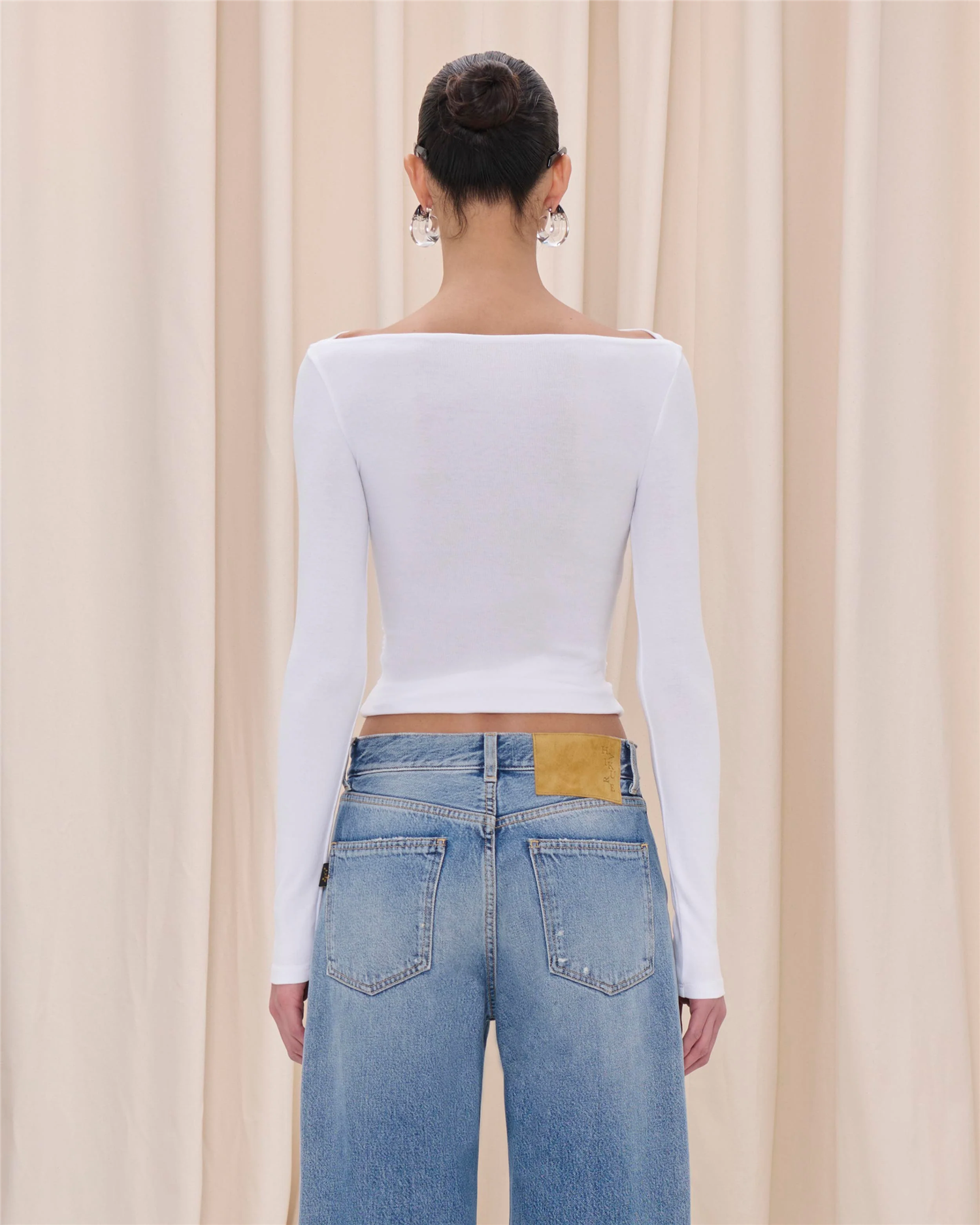 Modellen er 180 cm høy og bruker størrelse 26