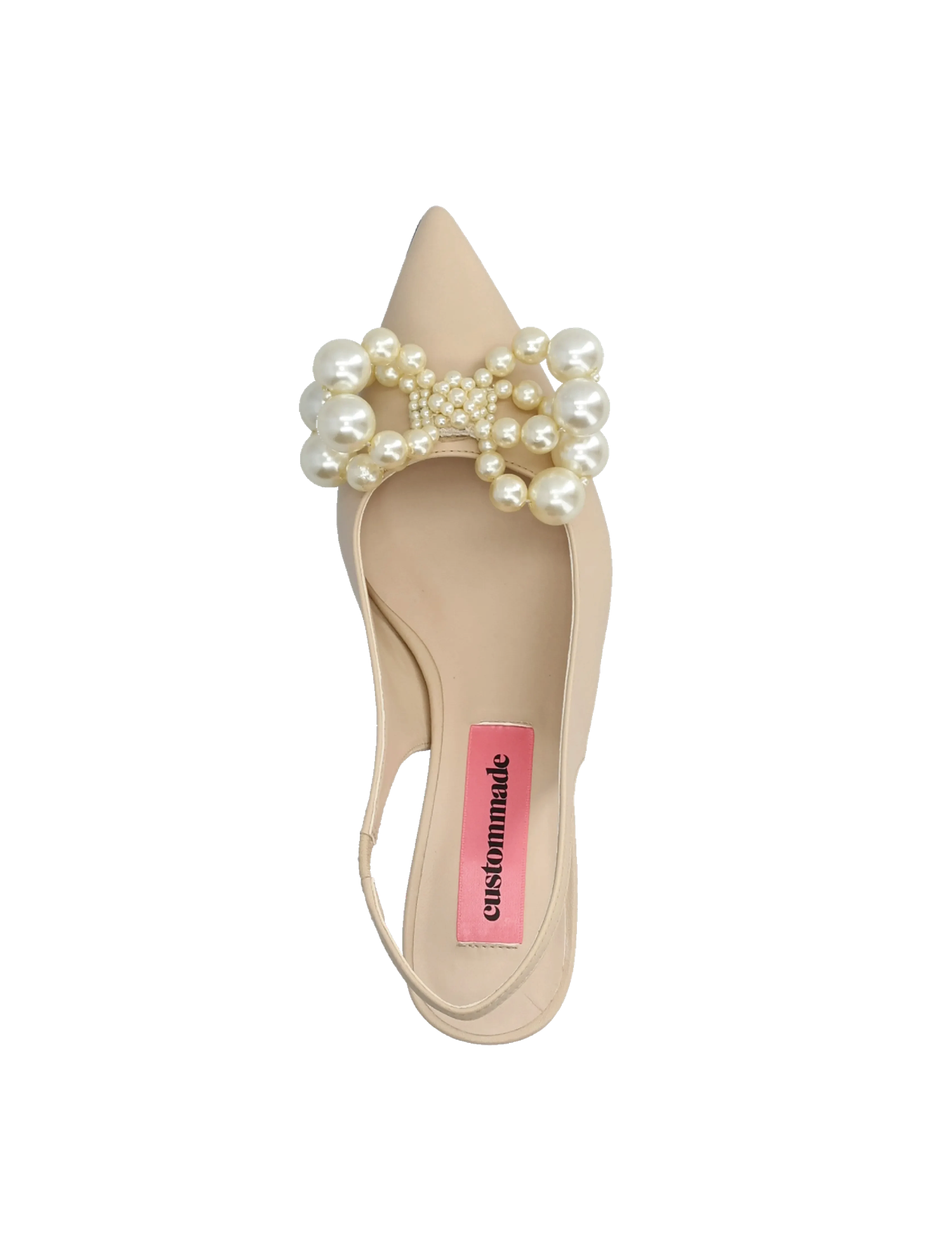 Florence Pearl Cream fra Custommade. Florence Pearl Cream er en sofistikert og feminin slingback som kombinerer klassisk eleganse med iøynefallende detaljer. Den spisse silhuetten gir skoen et raffinert uttrykk, mens det myke skinnet i en delikat kremfarge skaper et tidløst og eksklusivt preg.