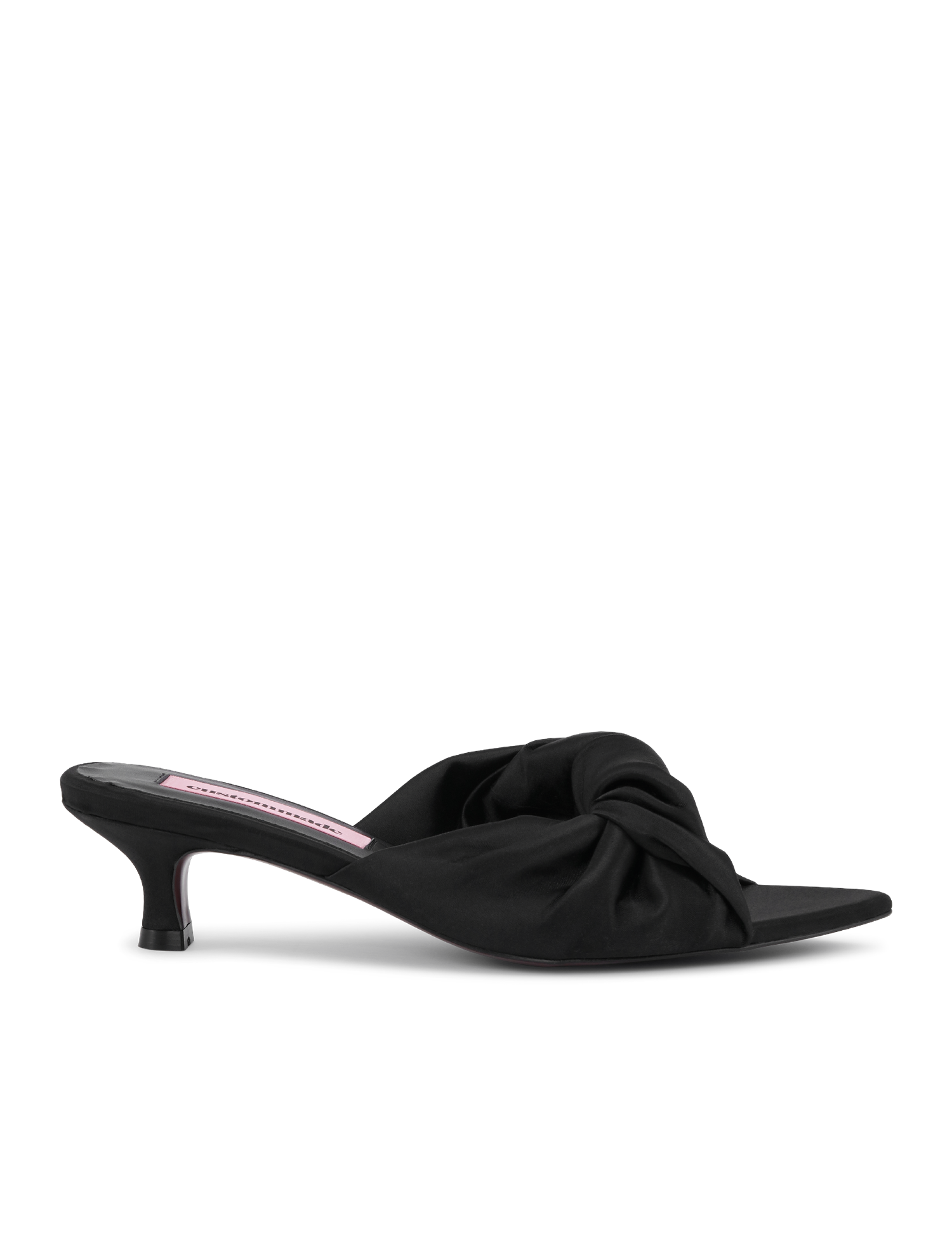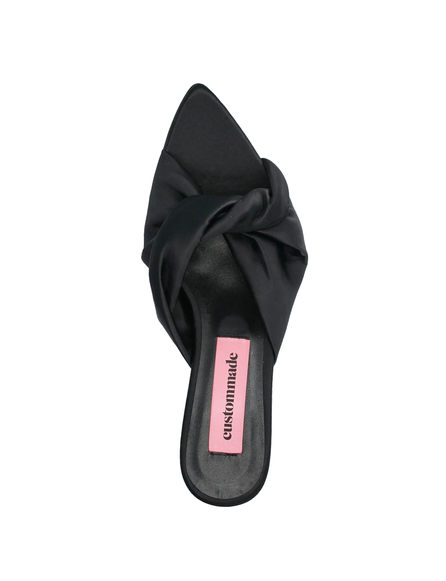 Alia Satin Black fra Custommade. Alia Satin Black er en elegant og feminin mule som kombinerer sofistikert design med moderne detaljer. Den spisse silhuetten gir skoen et raffinert uttrykk, mens den myke satinoverdelen tilfører en luksuriøs finish.