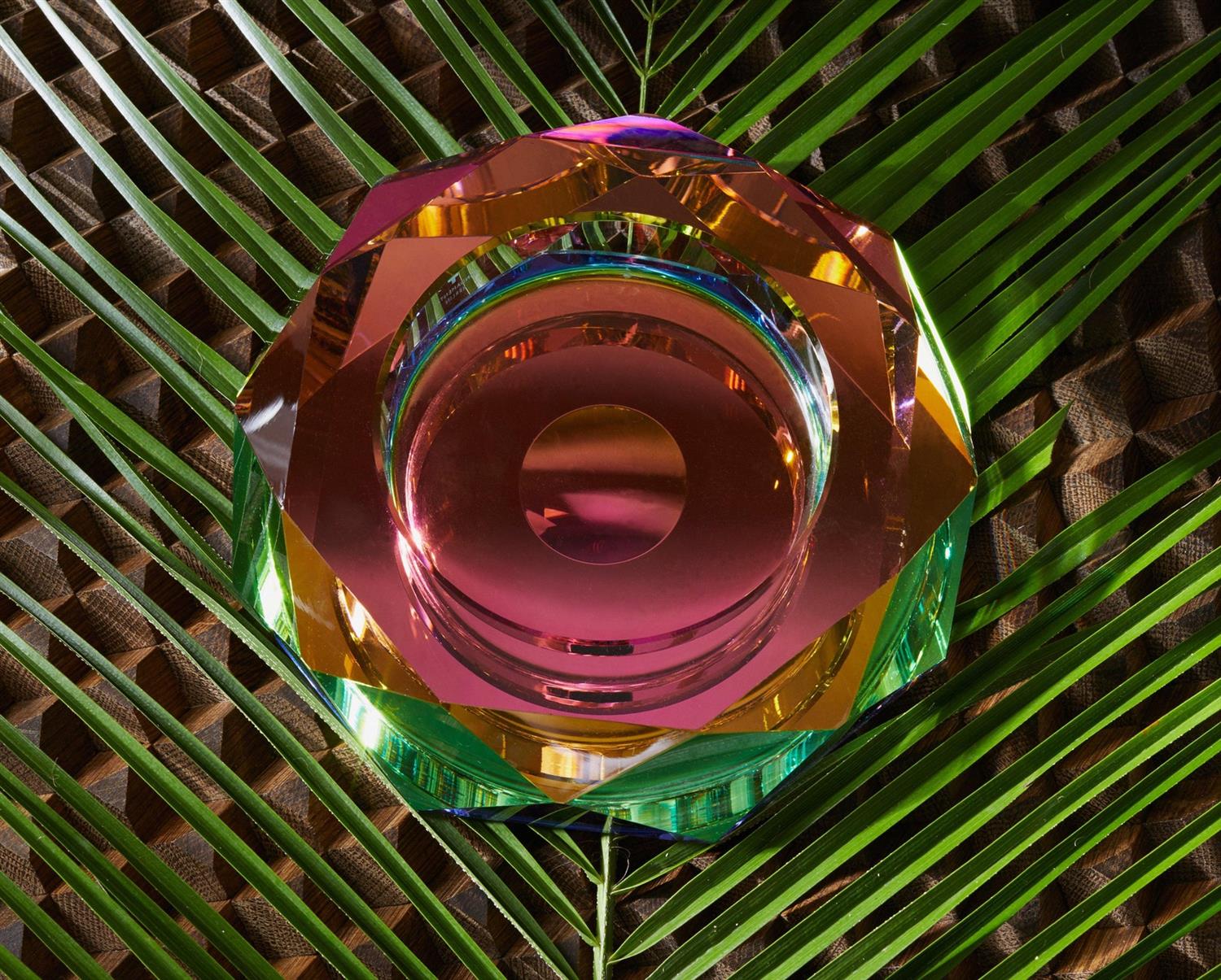 Regenbogen-serien er håndlaget av tung krystall, og deretter behandlet med en spesiell kromatisk film på undersiden som overdriver og forvrenger krystallens naturlige evne til å bryte lys inn i de syv regnbuefargene.